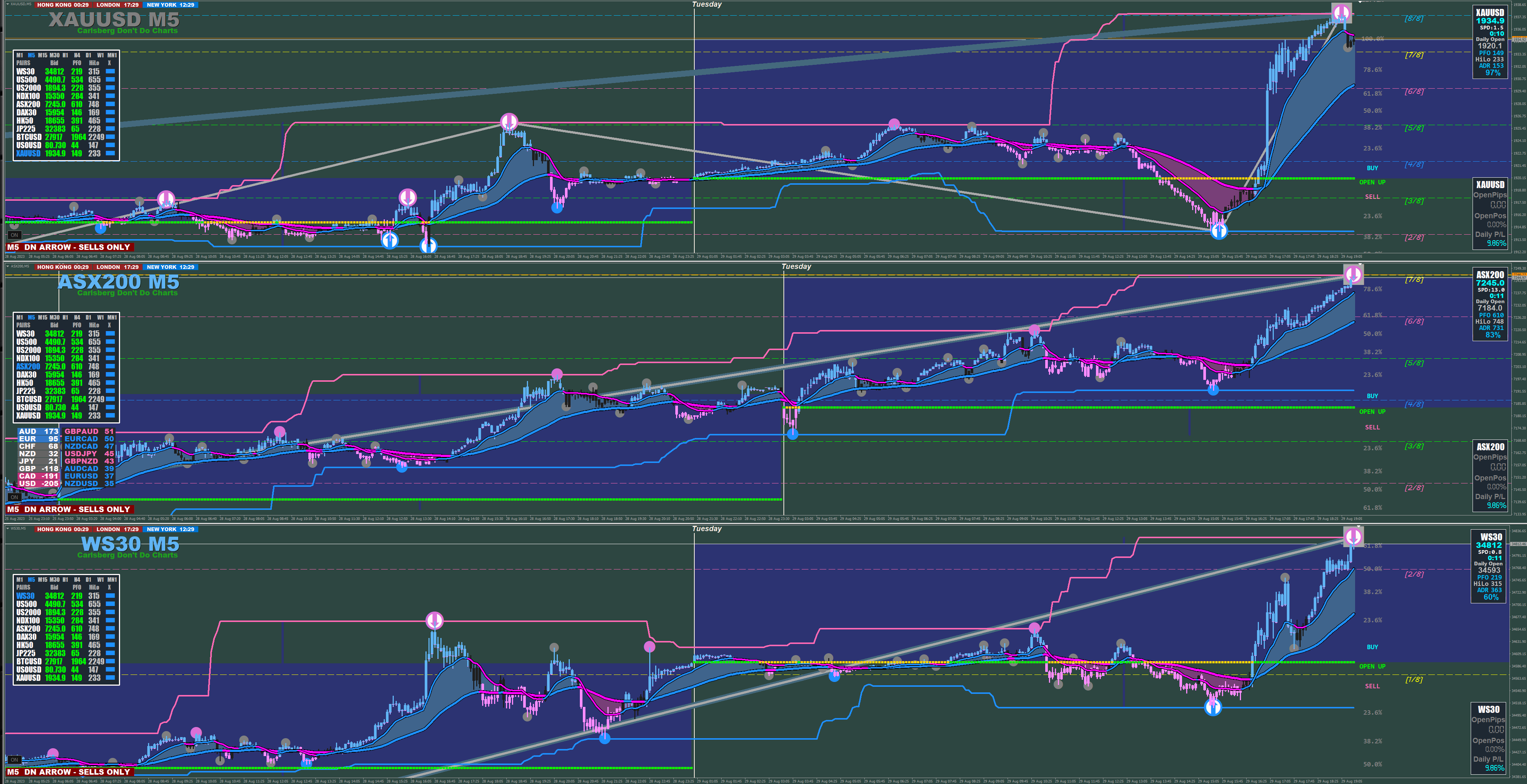 Basically i following trend on 1 hour, if 1 hour showing down trend, so in five minutes i will wait a big signal like a arrow or color dot and take the trade on same direction of the trend.