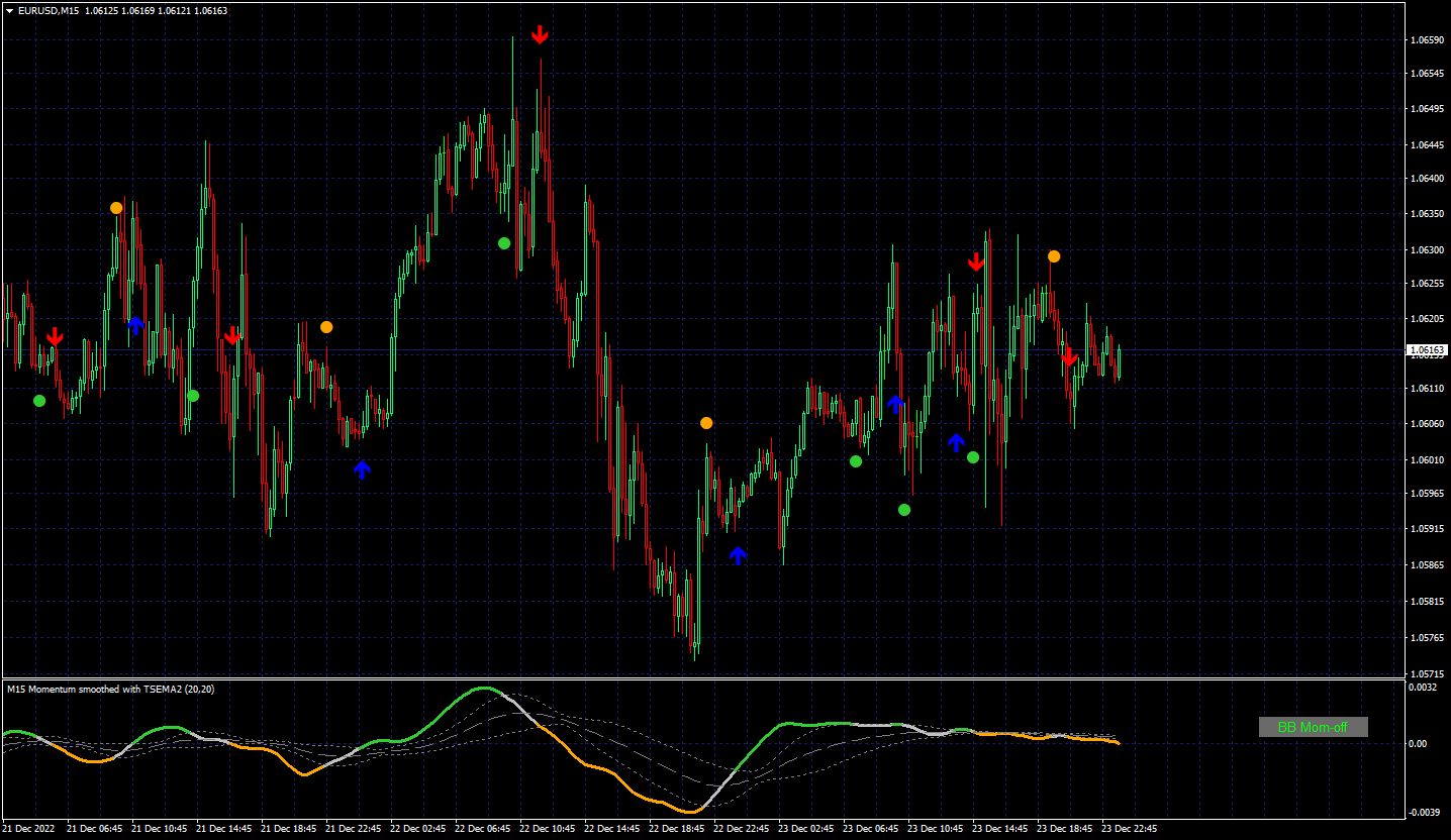 Could you please produce an exact replica of the "! VininI BB_MA_WPR avgs (mtf + alerts + arrows + btn)" indicator but use Momentum instead of WPR.