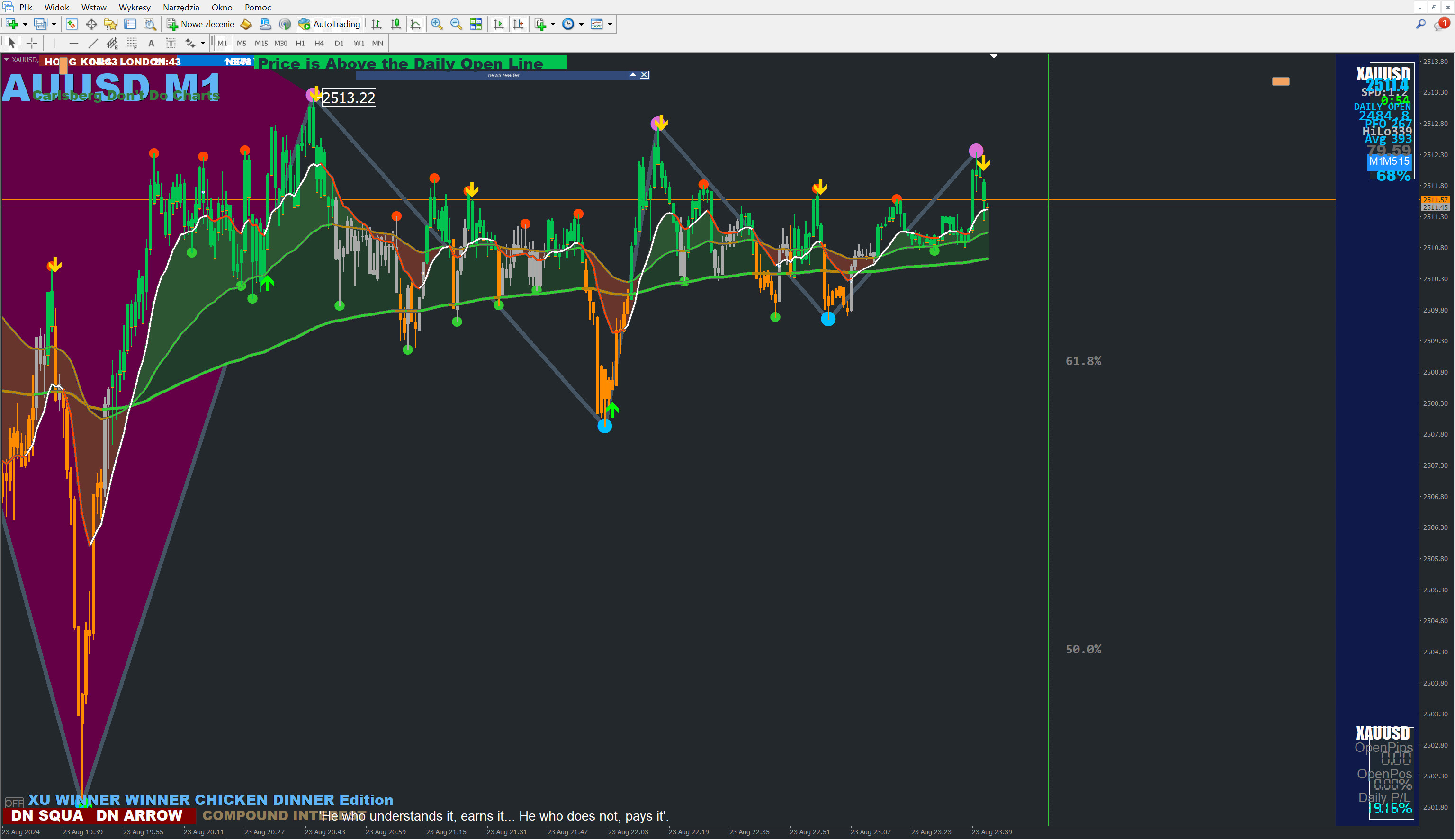 Thanks for the tip. That doesn't help. I've already been through the subject. I have a high resolution on my laptop, 3072x1920. In the XUv65 version, I dug into the code and adjusted the template to this resolution. In the latest version, it's as you can see. However, that doesn't bother me. I can see what I really need. When I remove indi: Panel2 (showing % win or loss) from the latest version, the appearance of indi: Panel1 also deteriorates. I added an older version (65) of Indi: Panel2 to match the resolution of my chart. However, these are just nuances that don't matter at the moment. Our energy goes there. So I don't worry about the "Frankenstein" on the chart, and I focus more on the price movement, that's my attention and energy. Later I'll think about how to model the appearance of the chart88FX88 wrote: Sat Aug 24, 2024 2:24 am I'll chip in too, a little screenshot..