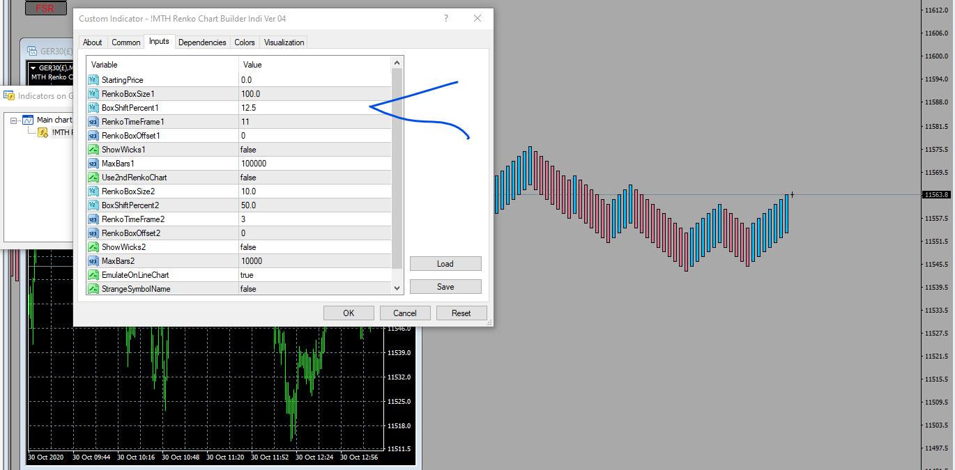 Hi, the version you posted works ok on mt4, just need to adjust the percentage from default 100% to your choice eg 12.5%.LadyAmira wrote: Fri Oct 30, 2020 7:10 am Hi folks, can anybody tell me if there is a new version which functions with actual MT4s? Or can anybody change the code that it works? With that version I don't get shifted Renko charts. Thank you!![]()