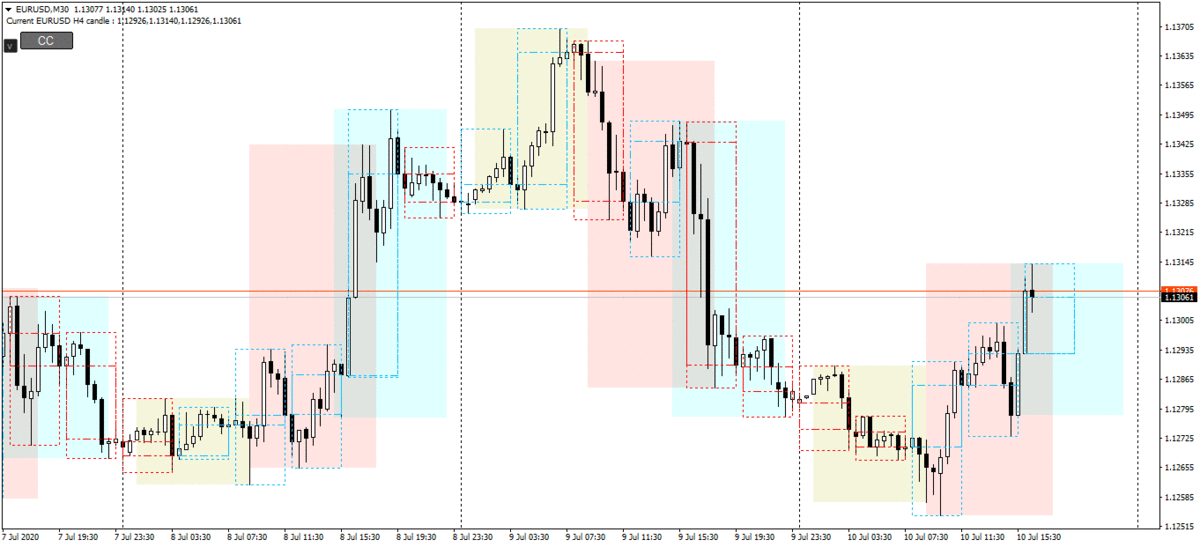 3. The High period forecast trend line. (pink color by default) The High period forecast trend line ā this is a new indicator addition indicator. This line will significantly increase your skills analysis and forecast price behavior. The forecast trend line creating has a different algorithm. The current price dynamics is used in the calculation. Trend line forecast can change its position depending on the current situation. At the same time it accurately tracks the current price behavior.