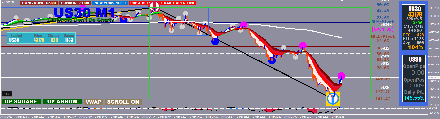 In essence, a brief look at any timeframe allows us to spot the BIAS, pinpoint ideal trade entry points, and identify the best moments for exits and continuation trades. Emphasizing these elements feels both sensible and actionable. Take a peek at the ETHUSD 1-minute chart right now to see what I’m getting at—notice the white Mini Dots ABOVE the Pink VWAP250 line, signaling a prime SELLING opportunity. The reverse holds true for the Green VWAP250 line. Don’t just take my word for it—check the charts yourself and see it in action. A treasure trove of new possibilities is out there, ready for sharp, proactive traders to grab. That’s why I believe trading should be fun—capture the intraday trade, seize the moment!