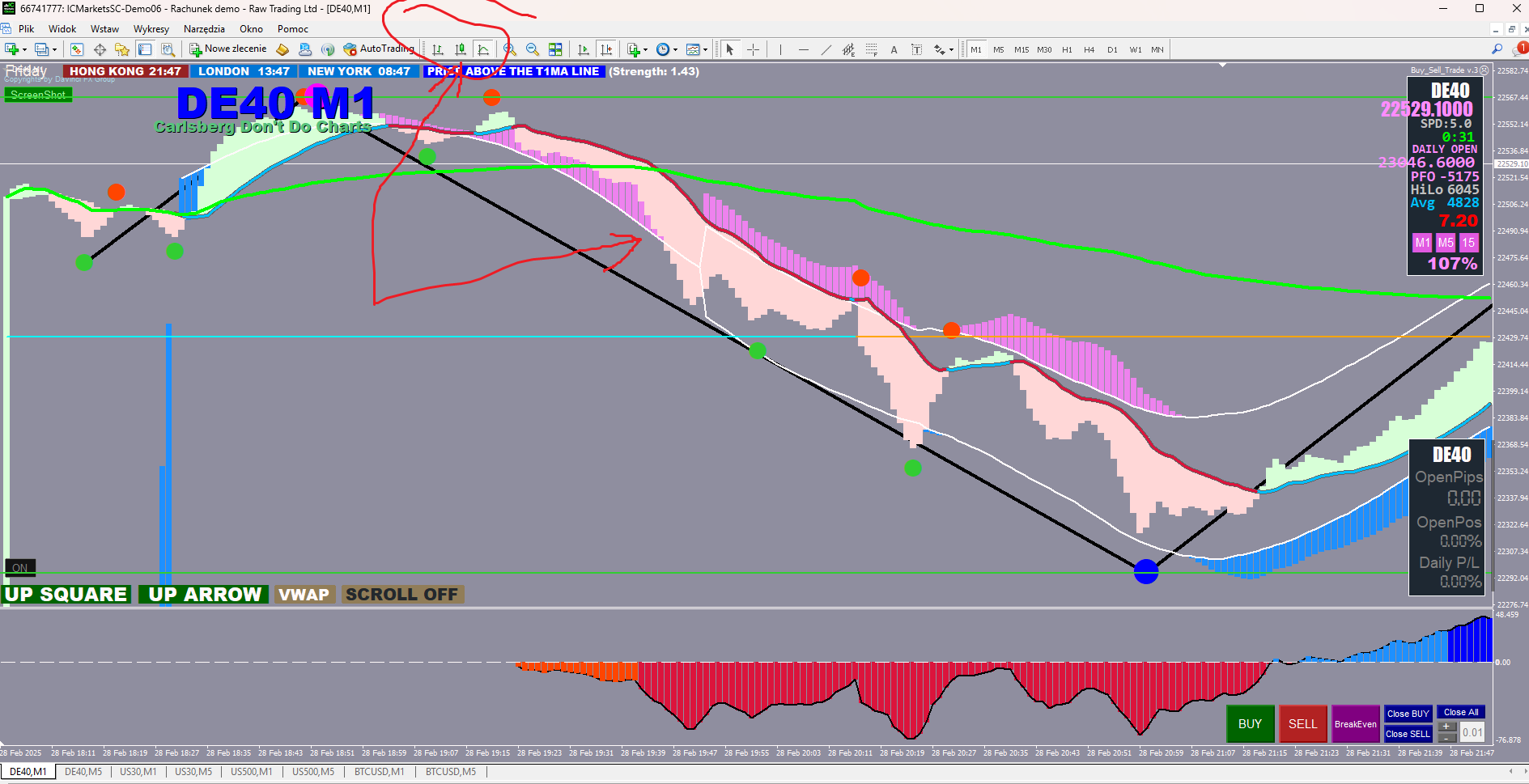The VWAP250 line: On the ETHUSD 1-minute chart, the EMAS alert triggered. While it may have been slightly premature, it served as a valuable heads-up to monitor the situation closely. As the price crosses below the EMA Ribbon, every instinct urges you to initiate a SELL trade, especially given the downward BIAS indicated by the Pink VWAP250 line.