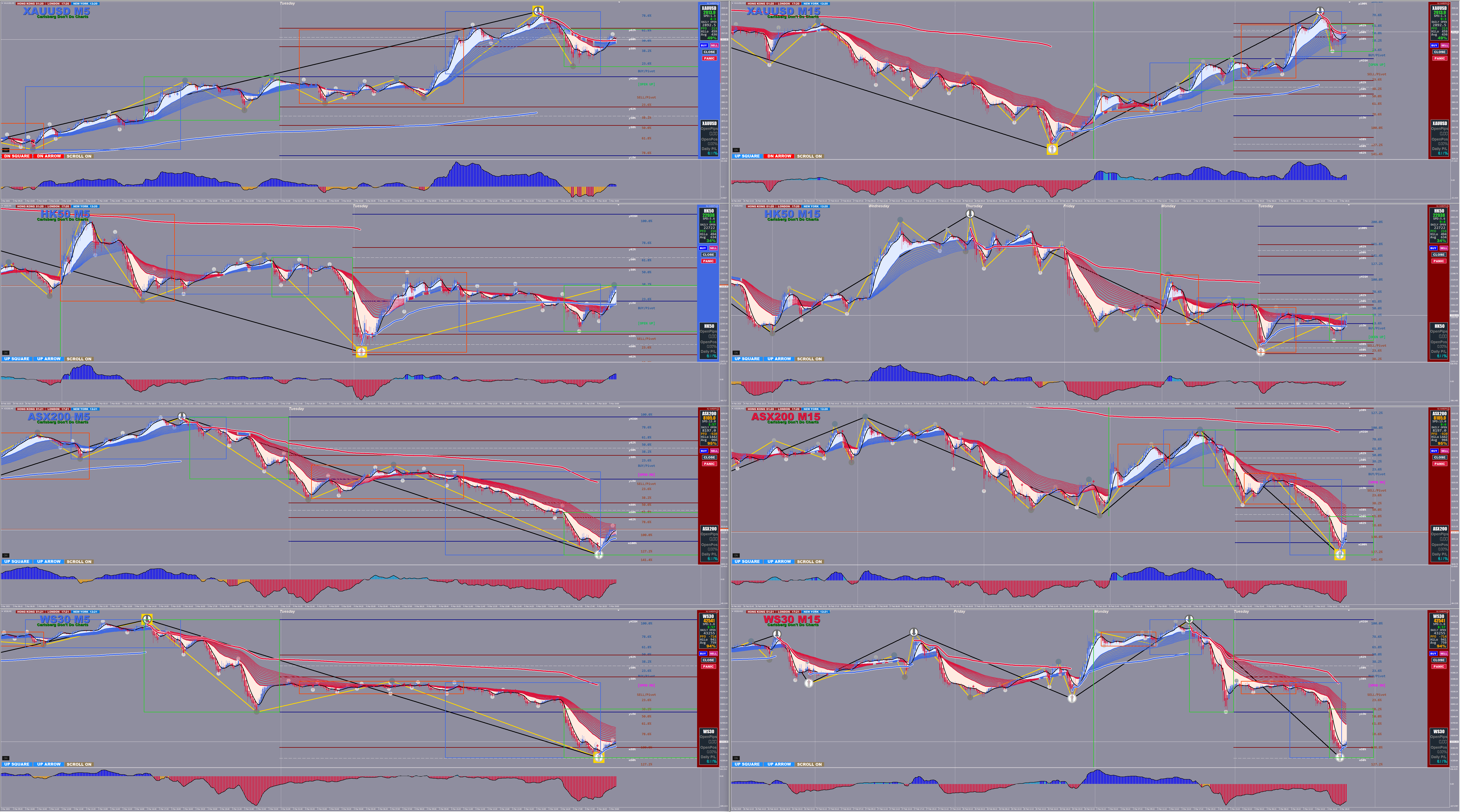 Drop to 5M/1M for precision entries/exits, aligning short-term moves with the broader bias.