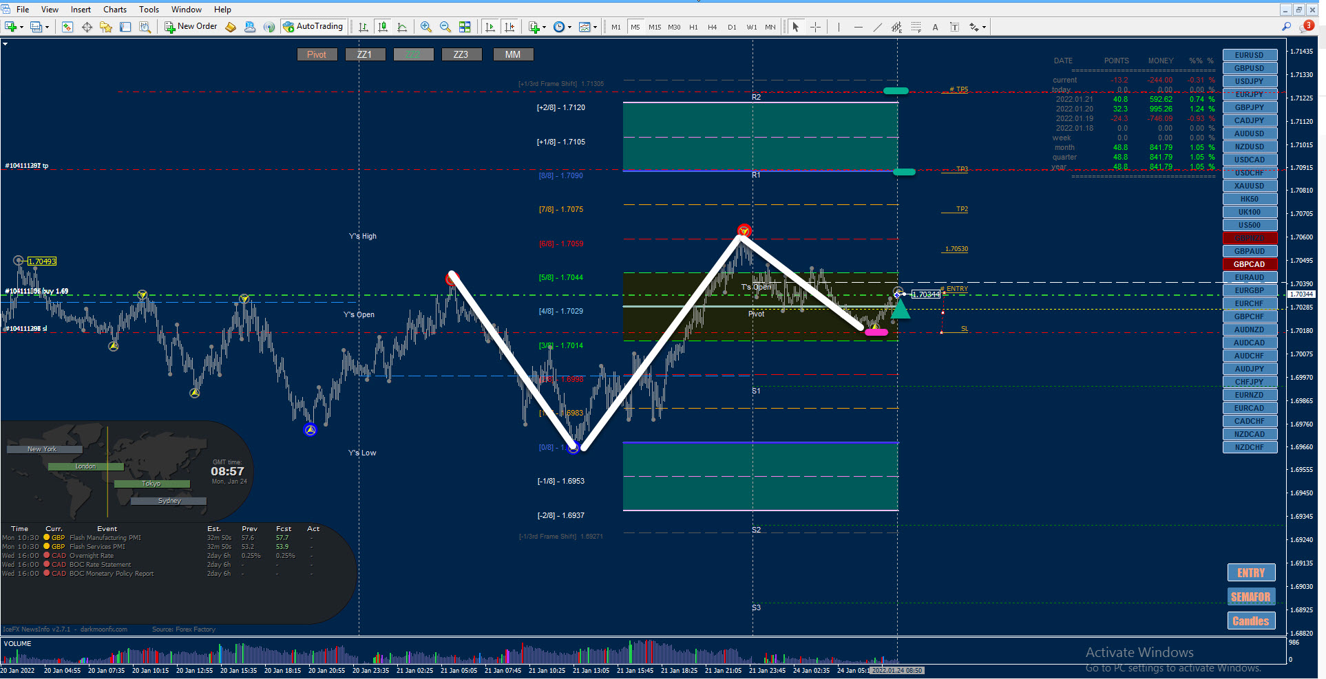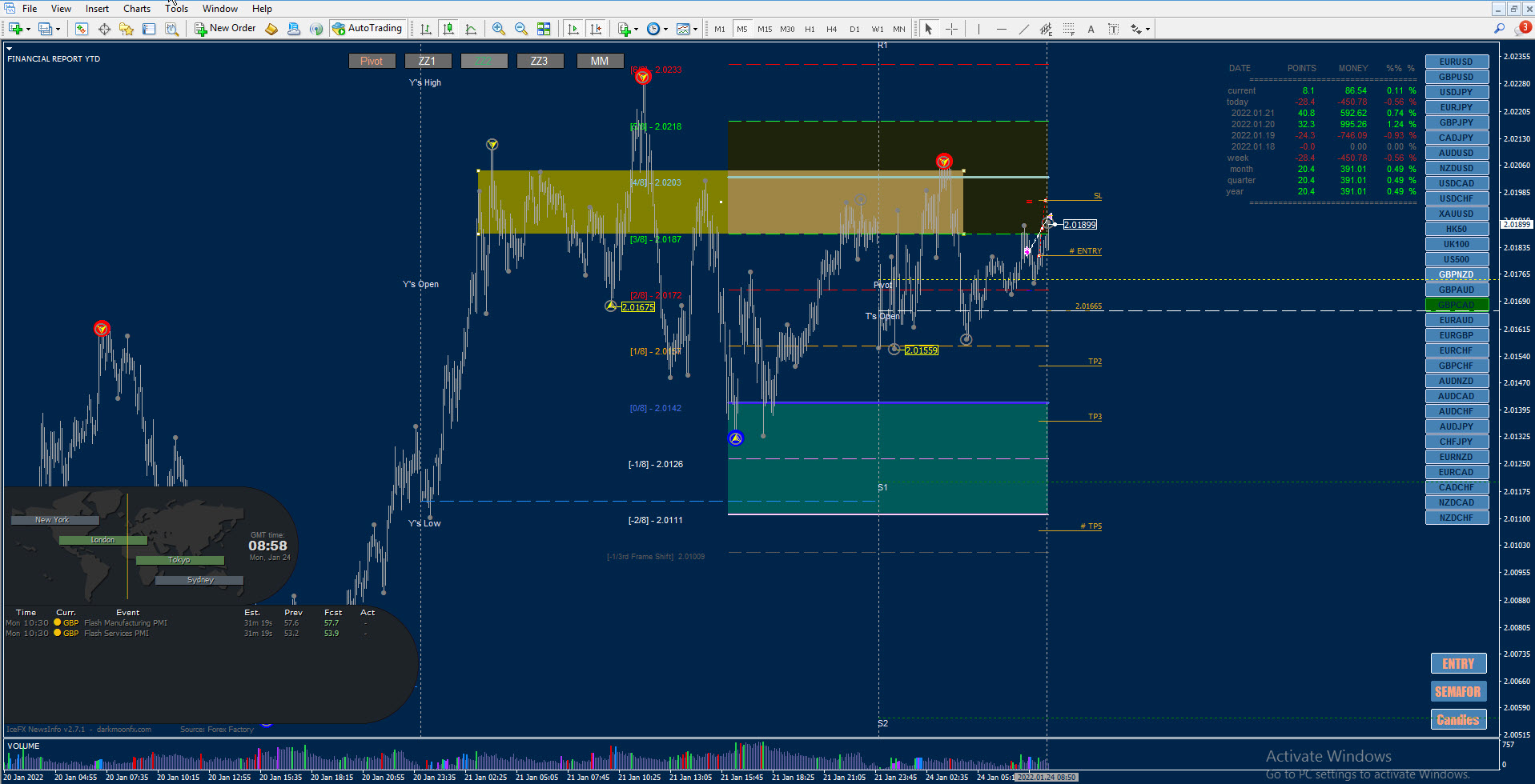 definitely, I will cut my loss on this trade and go-go long on GBP - GBPCAD M5 BUYsizabici wrote: Mon Jan 24, 2022 5:18 pm 24.01 GBPNZD M5 JUST IF IT GETS BELLOW the daily open line there it is a chance to keep following to S1, OTHERWISE we are still on an uptrend. If this shift does not happen considering the risk-reward ratio it is worth taking this trade anyway. Price seems to be rejected constantly on 4/8 MM so I feel quite justified taking this SELL trade as a possible shift in trend