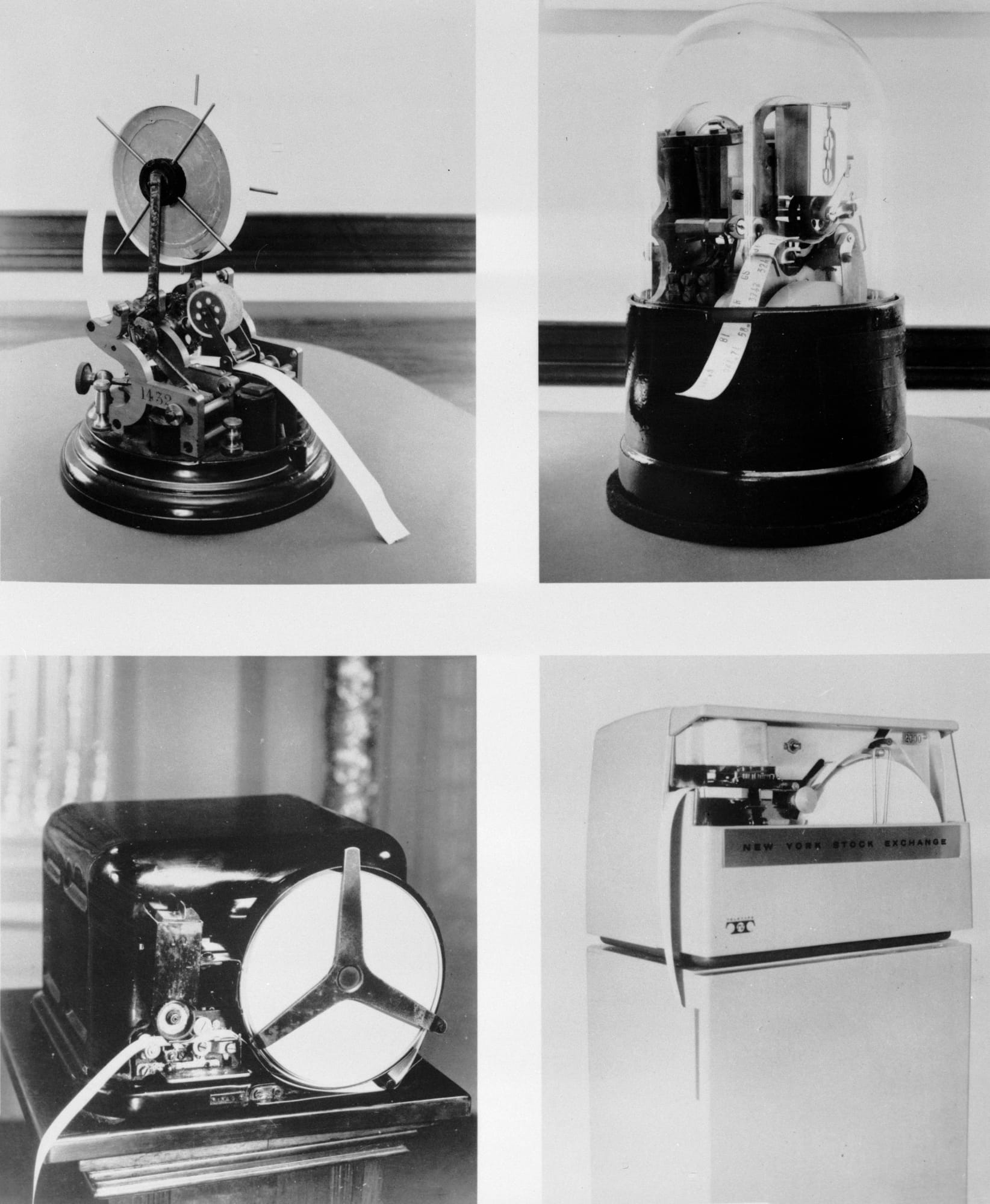 The first stock ticker (top left) was invented by E. A. Calahan in 1867. Since then the ticker