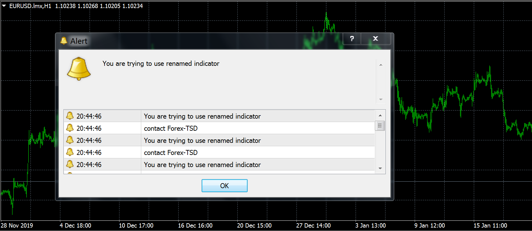This means the filename has been changed. To avoid this, please keep the indicator in it's original filename that it was downloaded as. It's done this way as a certain measure to protect the code from being stolen and sold/renamed.