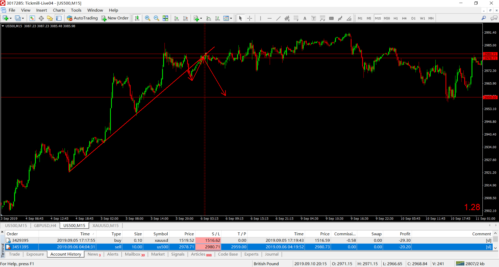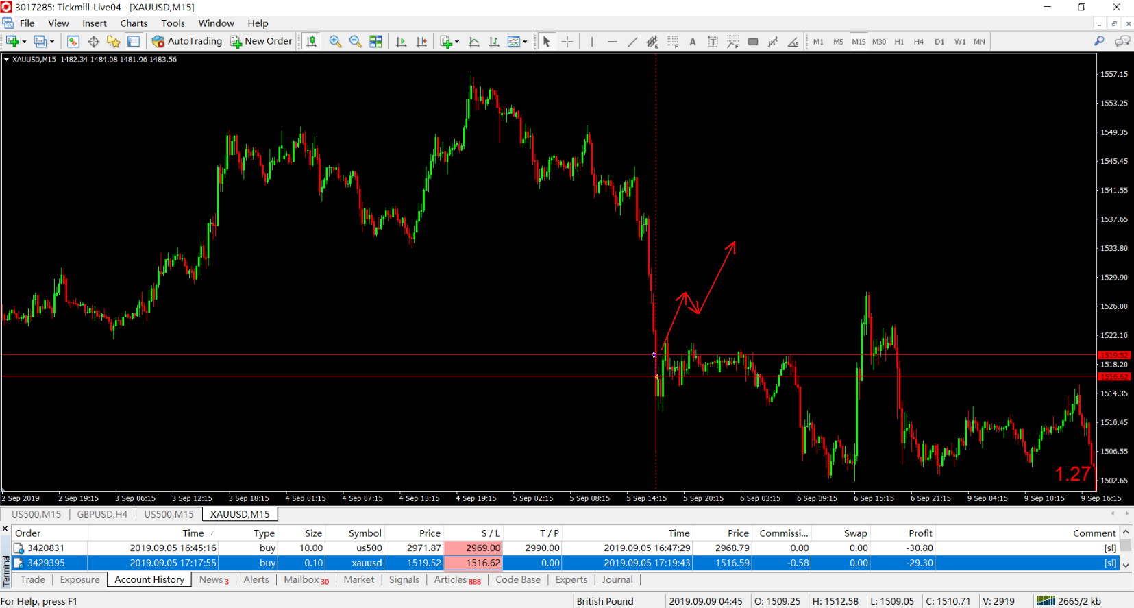 XAUUSD: 6trades,-109.7pips: (SL)4trades,-123.3pips, (BE)1trade,+2pips,(PP)1trade,+11.6pips