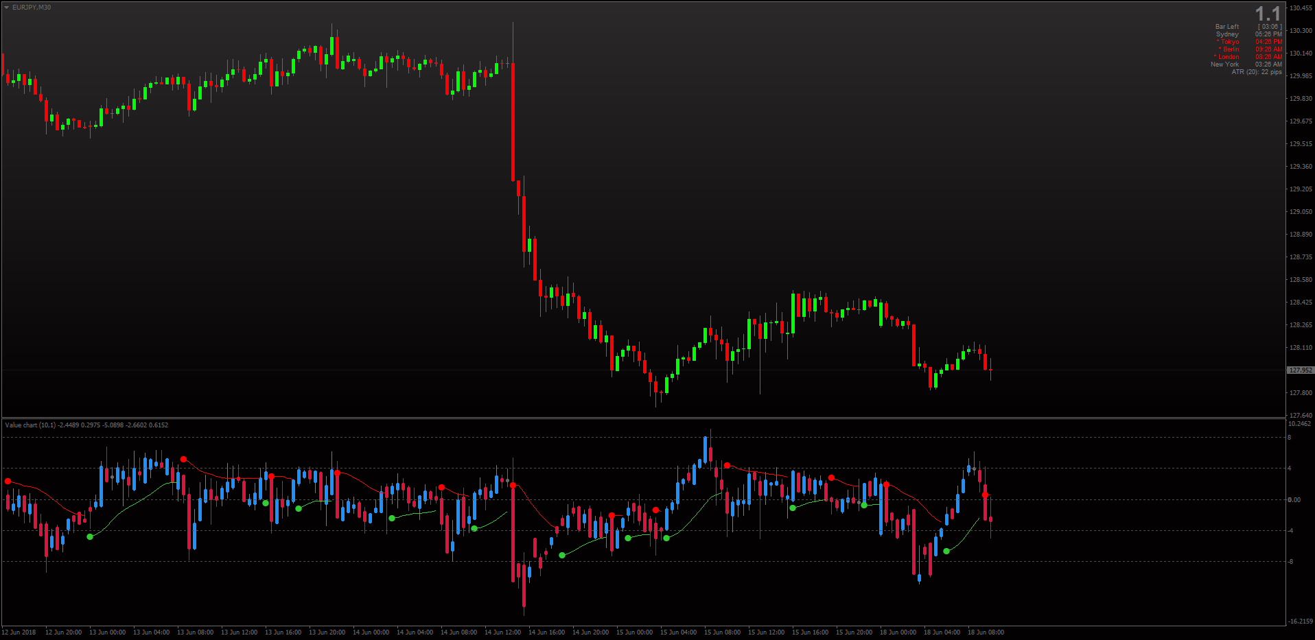 The Value Chart Trend Envelopes are ideal for seeing market tops & bottoms from a bird's-eye view & can help traders enter reversals & remain in trades with the guidance of the envelopes. Upgrade by Mrtools this indicator comes with many features: viewtopic.php?p=1295375553#p1295375553