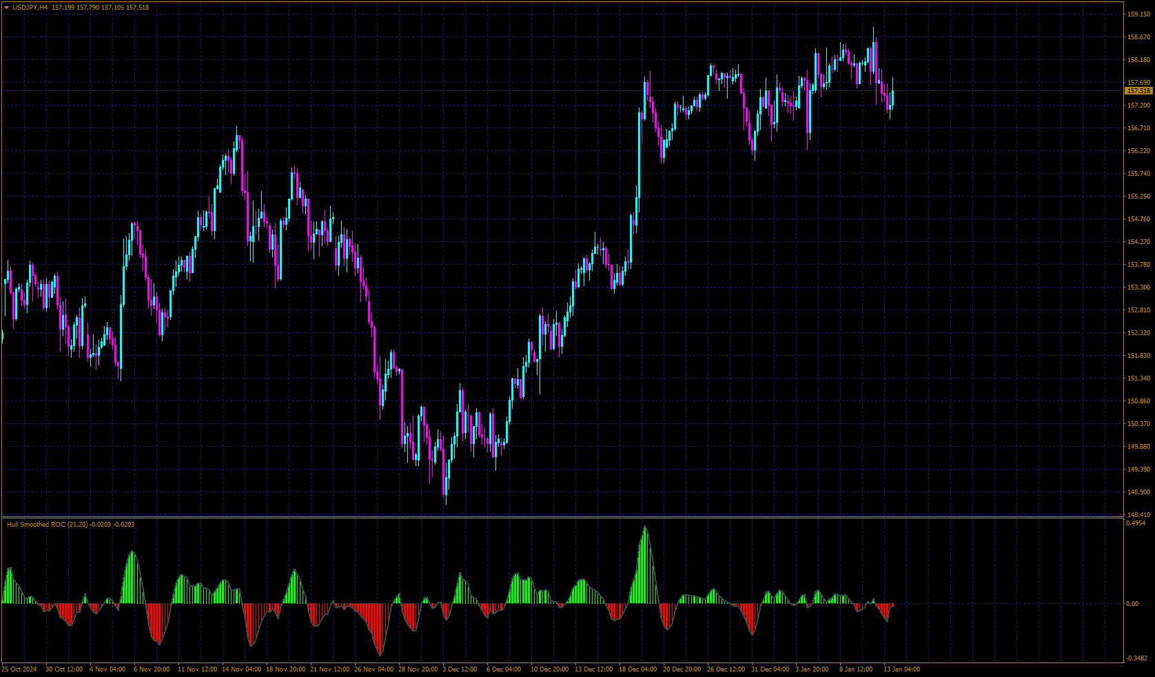 348Hello, made this one.Intrest 1 wrote: Mon Jan 13, 2025 11:30 pm Could any of the respected programmers make an HMA RoC indicator? This would be the fastest indicator in the world