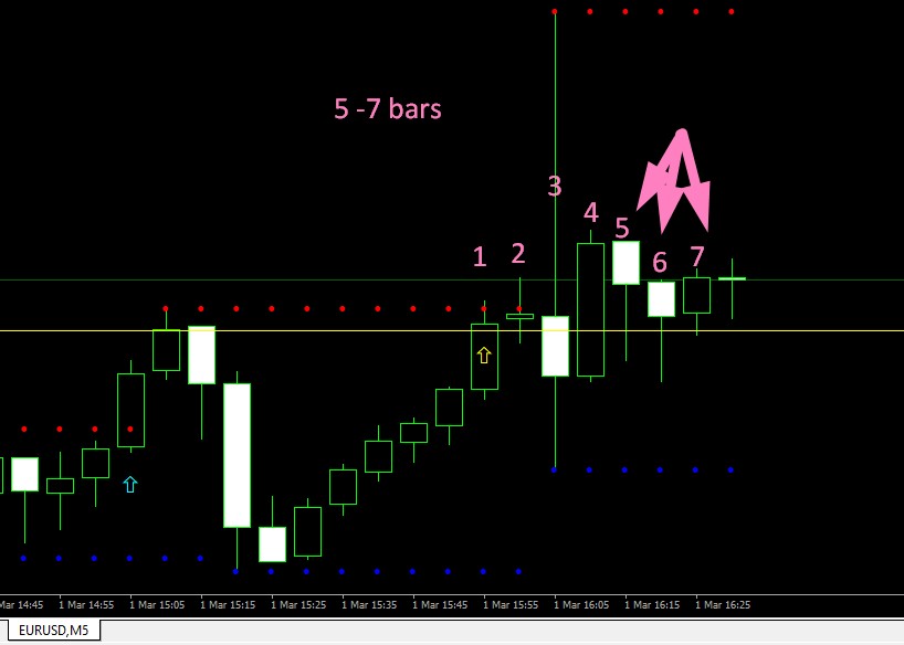 if the current bar breaks fractal Green dot bar close price