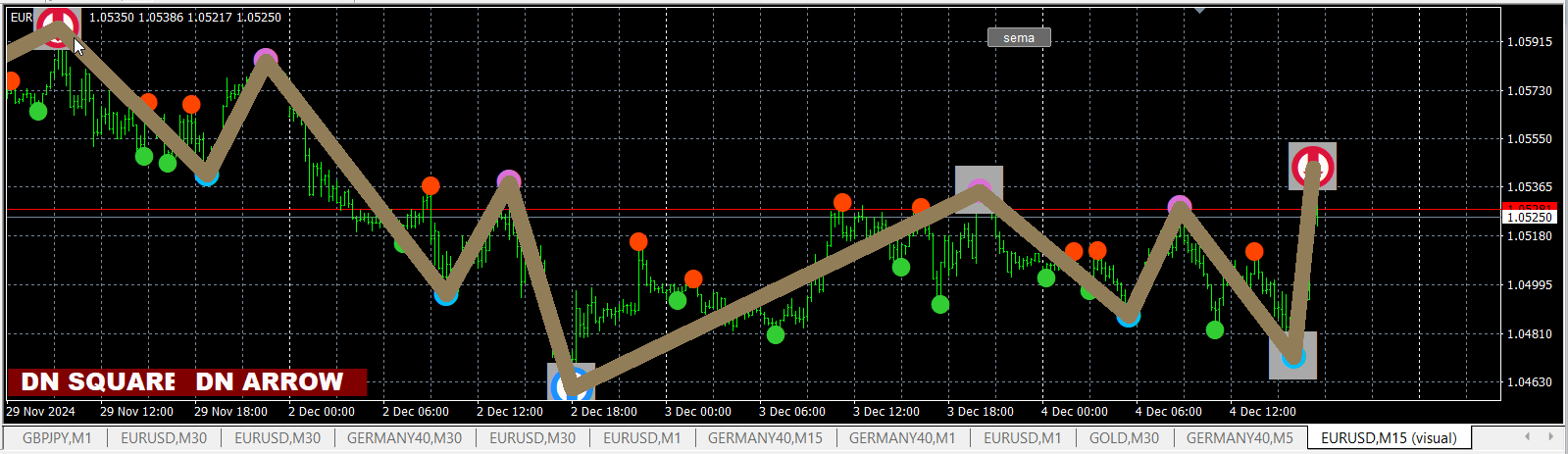 Hello, for future post, be kindly and post full picture with timeframe and instrument, not only torzo like this.Ricstar_8 wrote: Fri Dec 06, 2024 10:44 am This Semaphore appearing with a blue dot is not correct. At times displays in a way that makes it ambiguous. ie; Is this a Large Arrow Dot or a Square Dot? Can you please make it only represent what it actually should be. Thanks again