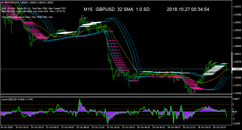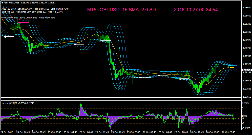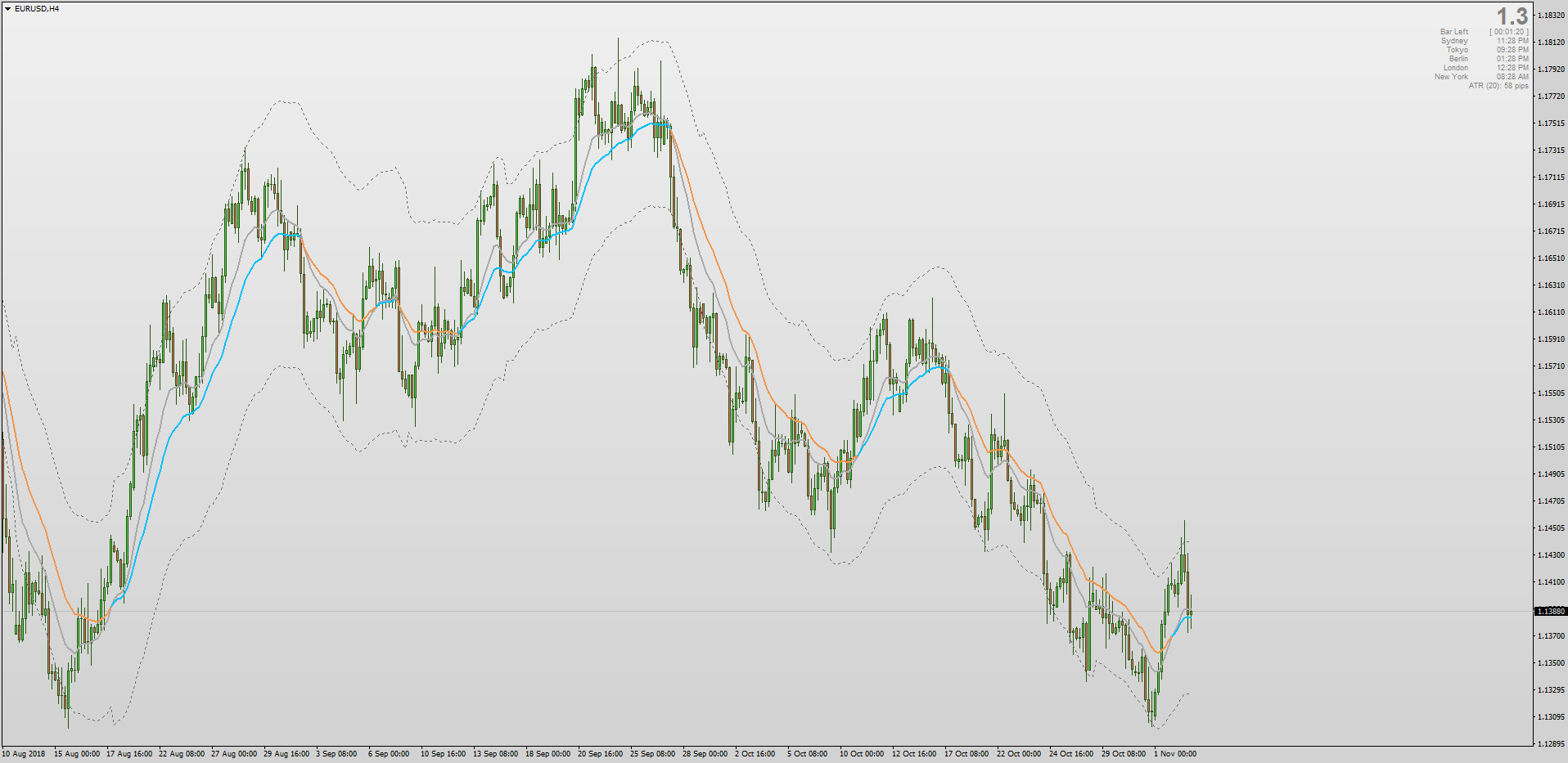 The auto envelope automatically sizes channels by calculating a standard deviation for the last n bars. It is designed to change value at most once a week (once a month on a weekly chart), making it suitable even for intra-day data (use the ‘Fixed channel size’ parameter to switch from one mode to the other).