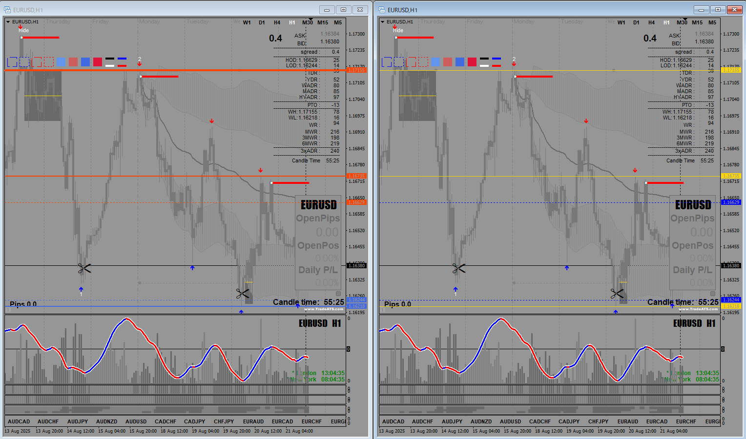 You can change the colour, thickness, and line type for each timeframe, support, and resistance level.