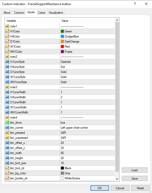 FractalSupportResistance button.mq4Ogee wrote: Mon Jun 29, 2020 7:58 pm the best S/R indy imo is this one which uses and colour codes levels off the Mn, Wk, D, H4 and H1 charts;