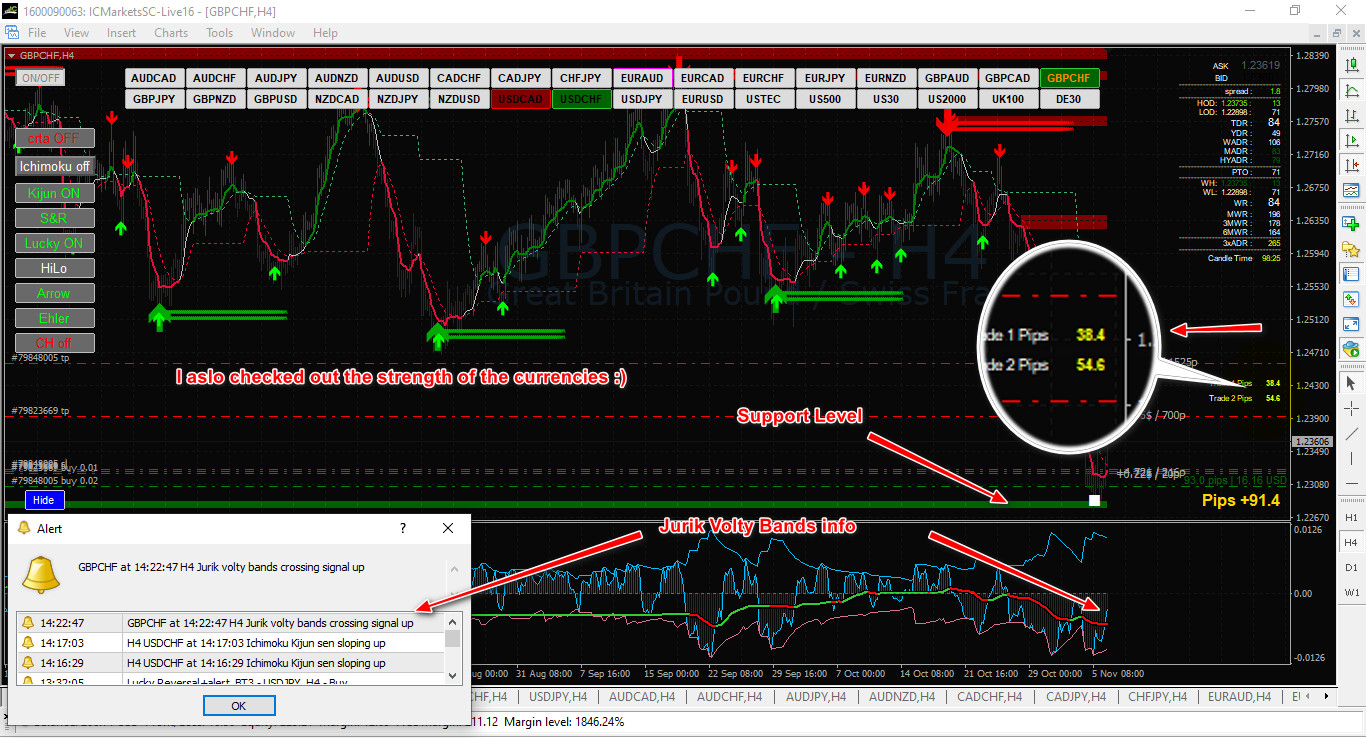 Below now are a few screenshots of why I took the trades and a few that I will allow to continue to run.