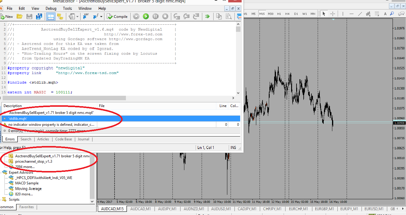 when we apply asctrendbuysellexpert_v1.71_broker_5_digit_nmc indicator on chart not working in metaeditor