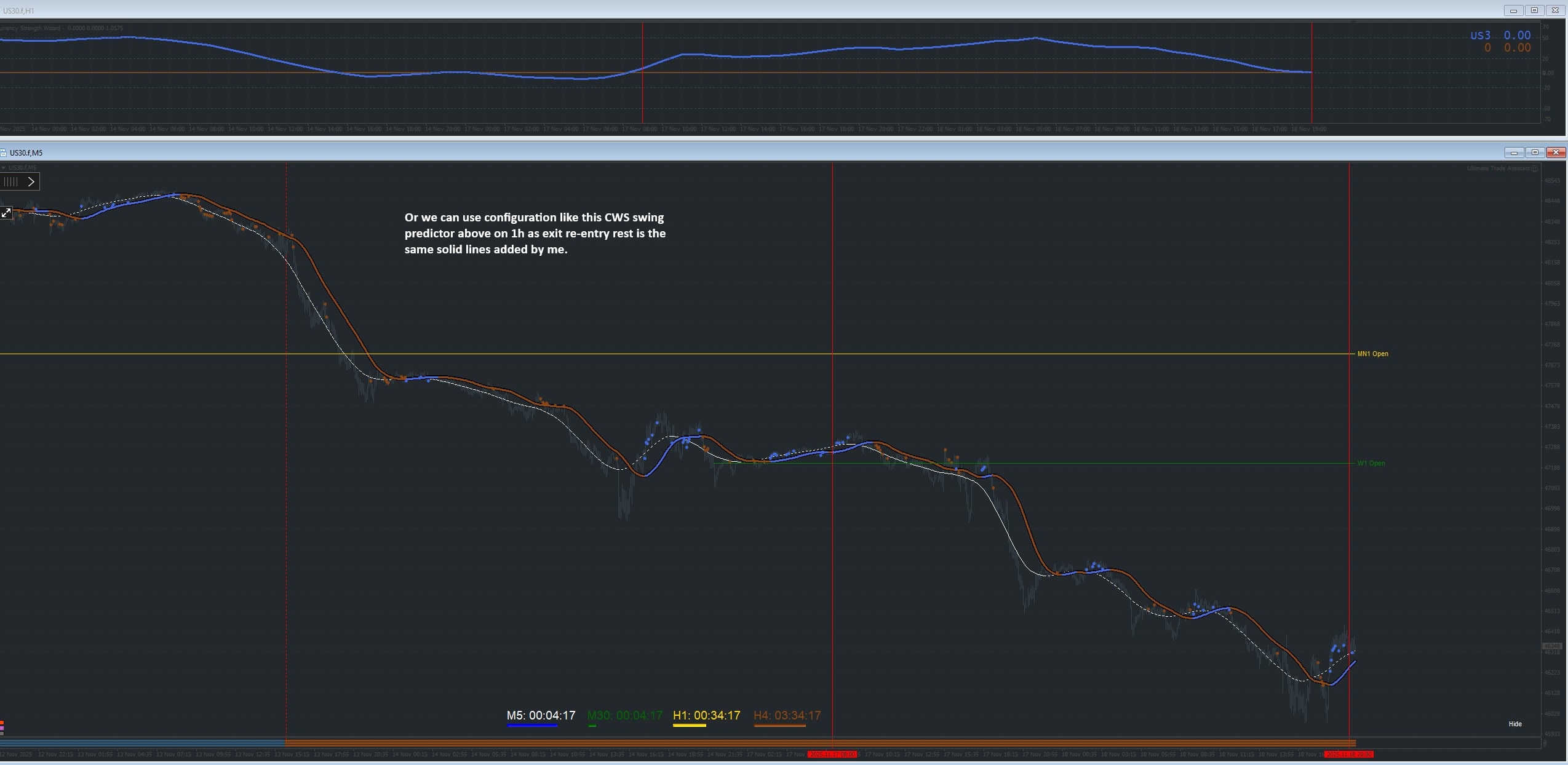 For instance, if the D1 CSW reading shows a strong downtrend (a large difference between the two values) on USDCAD you should trade in the direction of the higher timeframe and execute trades on the lower timeframes when they align with the higher timeframe direction.