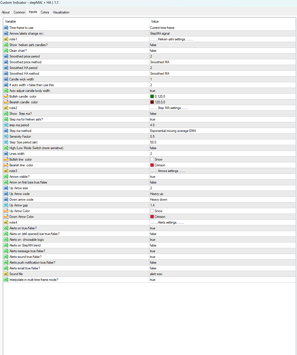 Dear Kvak - I am trying to automate my system and the core is your wonderful StepMA indicator. To automate it I'd need to have specific default settings in the indicator that mirror my system. I know that asking for a code is unpolite, but hope that asking for 5m of your precious time can be fair.