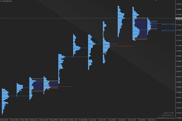 - Added an input parameter (DisableHistogram) to prevent the indicator from drawing profile histograms (TPO's). Value area and point of control are still drawn in this mode.