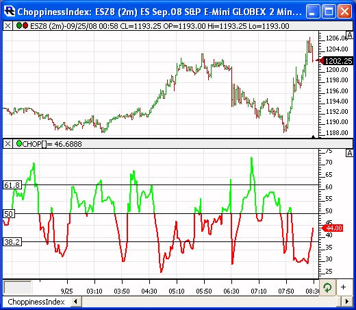 The choppiness indicator is not like an oversold or overbought indicator, so trying to time the moves inside of a tight range could prove a little difficult and may need a little help from a stochastics or Williams R.