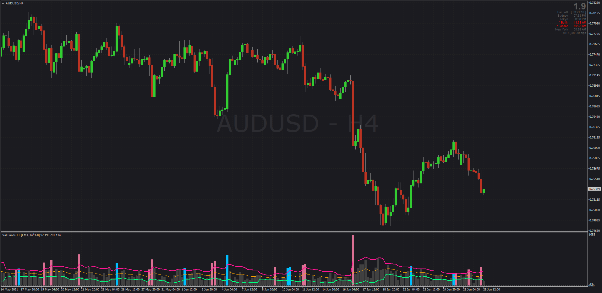 PS: For an explanation of how to use this indicator and a downloadable MT4 template, please see here: Val-Bands indstructions and MT4 Template.