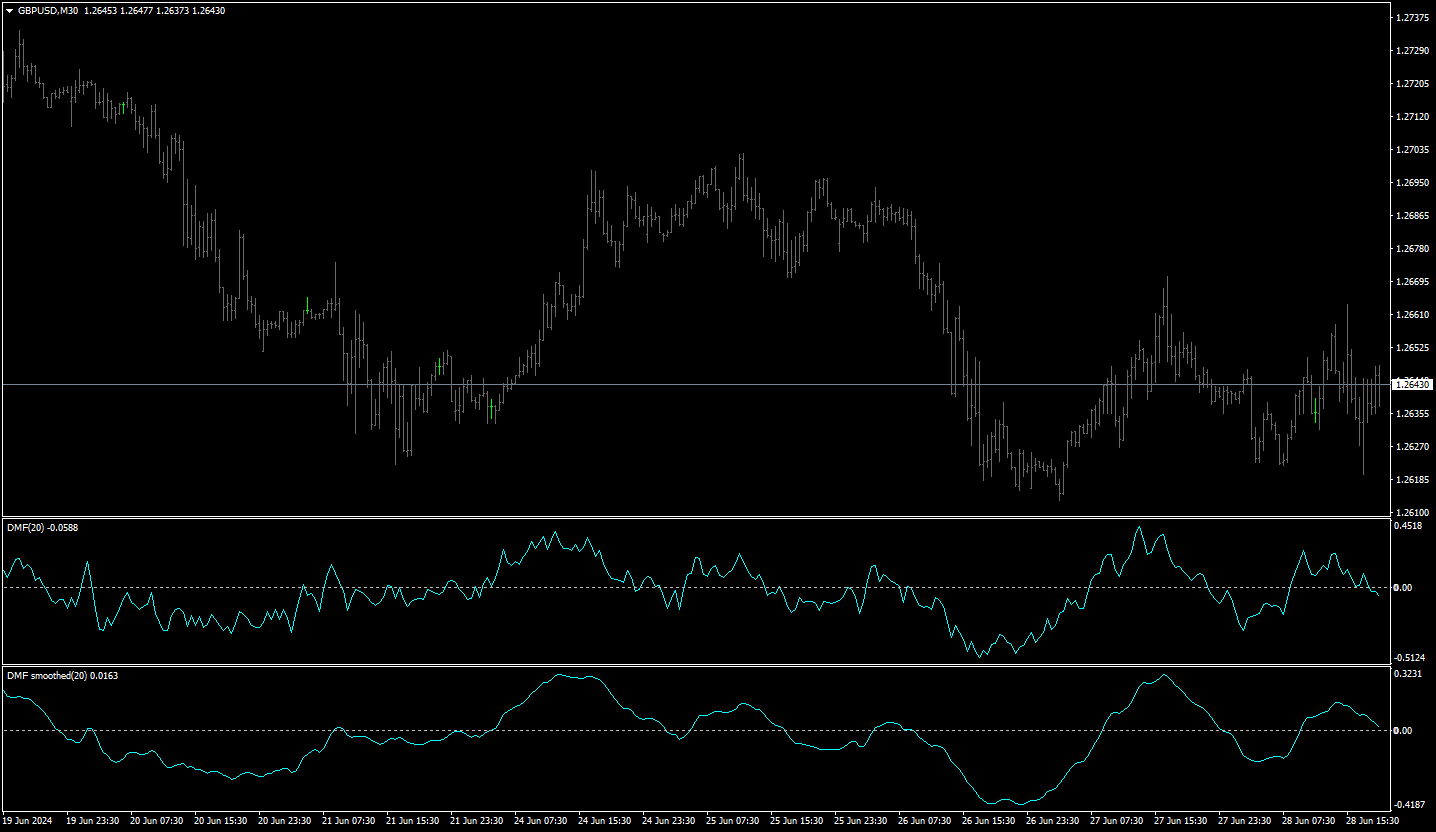 - Identifying Trend Weakness: Divergences between price and DMF values can signal potential trend reversals or corrections (e.g., DMF falling below zero may suggest weakening bullish momentum or emerging bearish trends).
