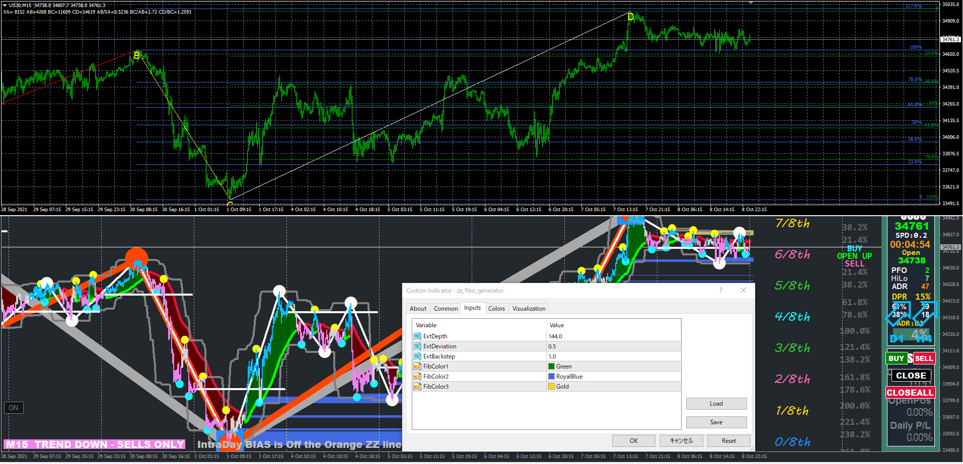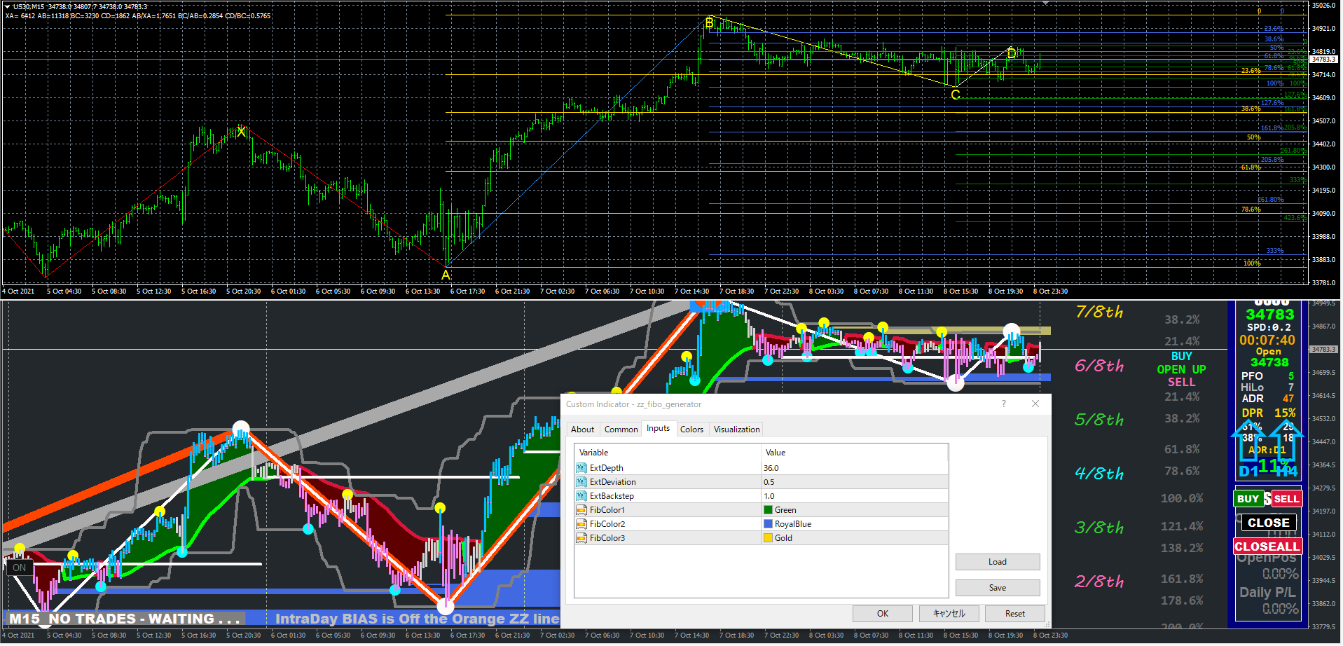 viewtopic.php?p=1295445194#p1295445194Mustafa wrote: Mon Oct 11, 2021 5:06 am Hello XARD.... Is it possible to project the zigzag swings with the help of fibonacci to determine when the next zigzag line would form another high or low.... Does any one have the required skill to attach fib projections to the last zigzag leg to determine the extension levels at which the next big dot will appear.....?