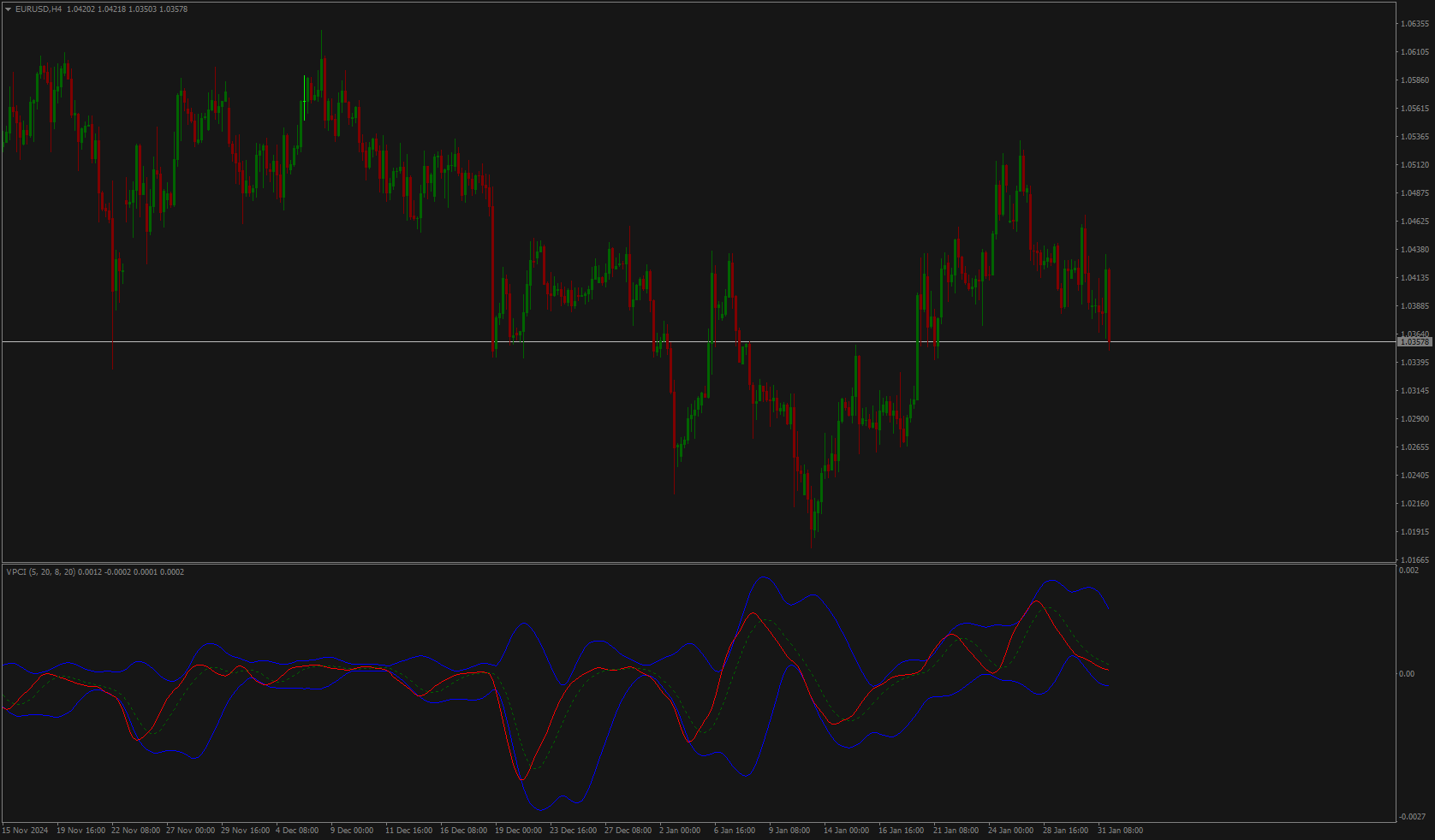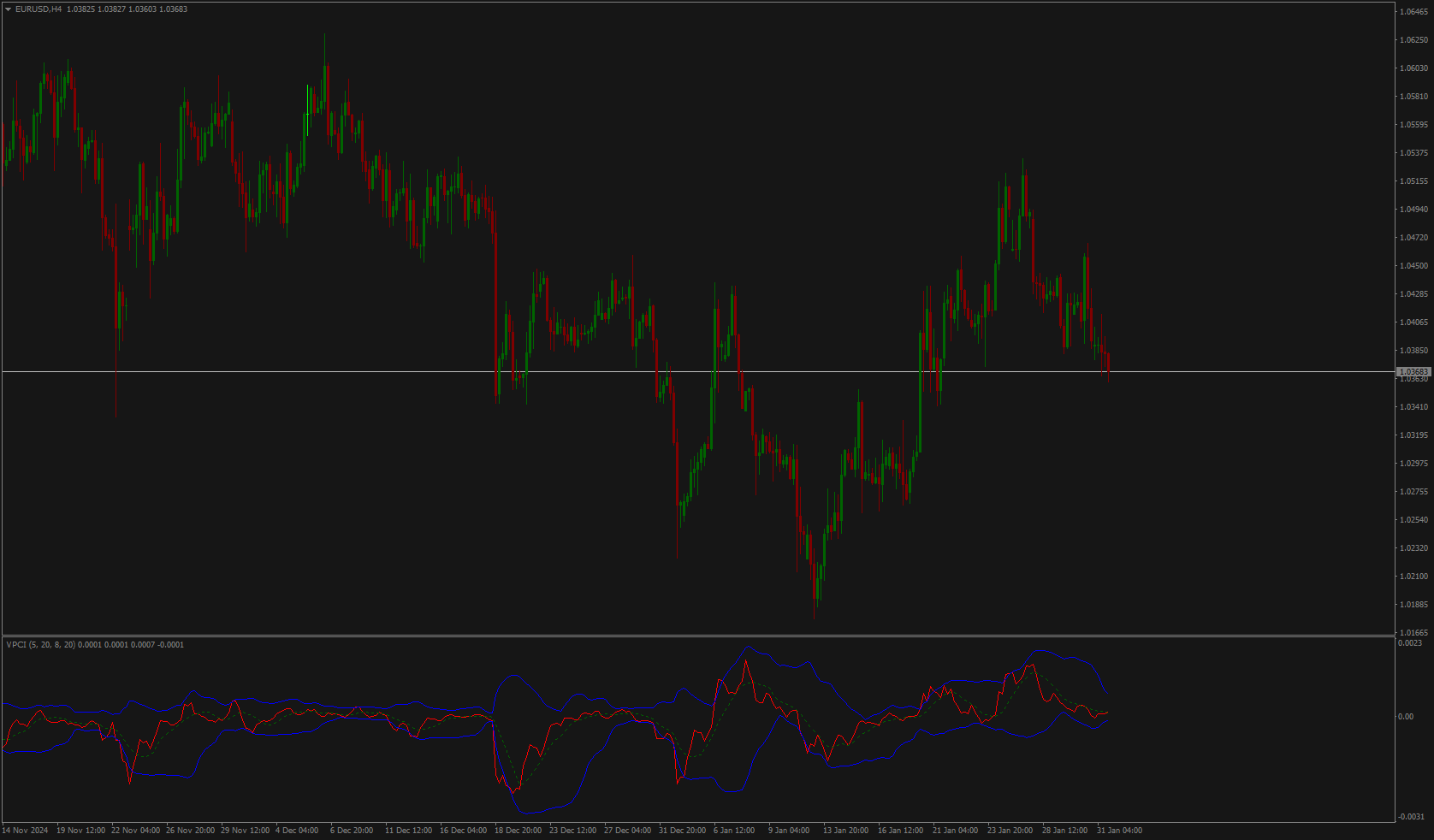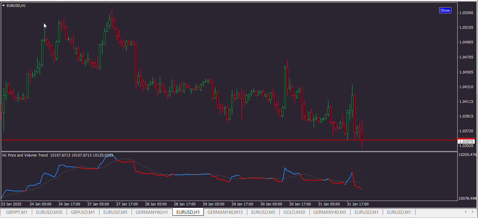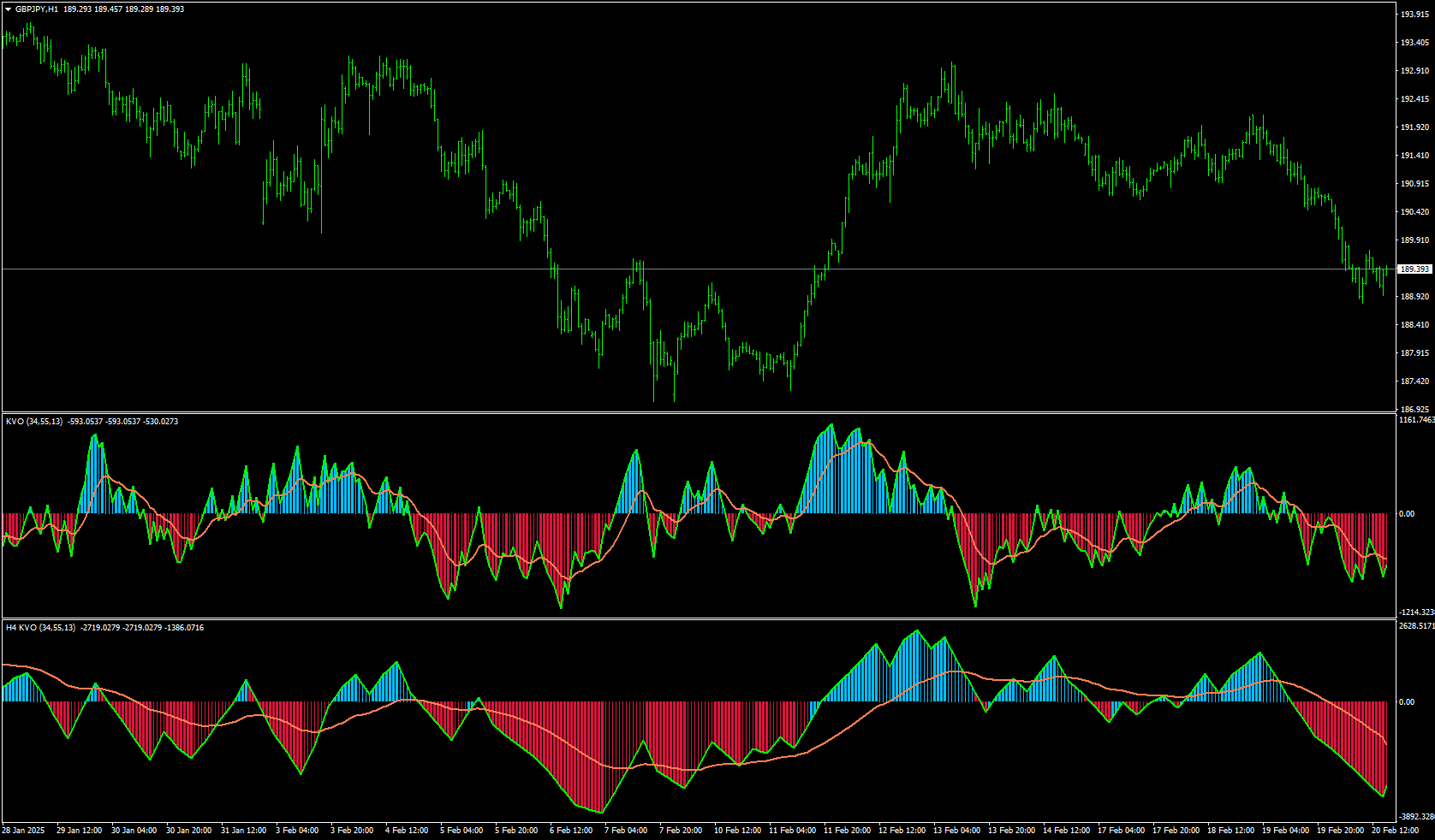 "Blue bars = rising up volume / Red bars = falling down volume."