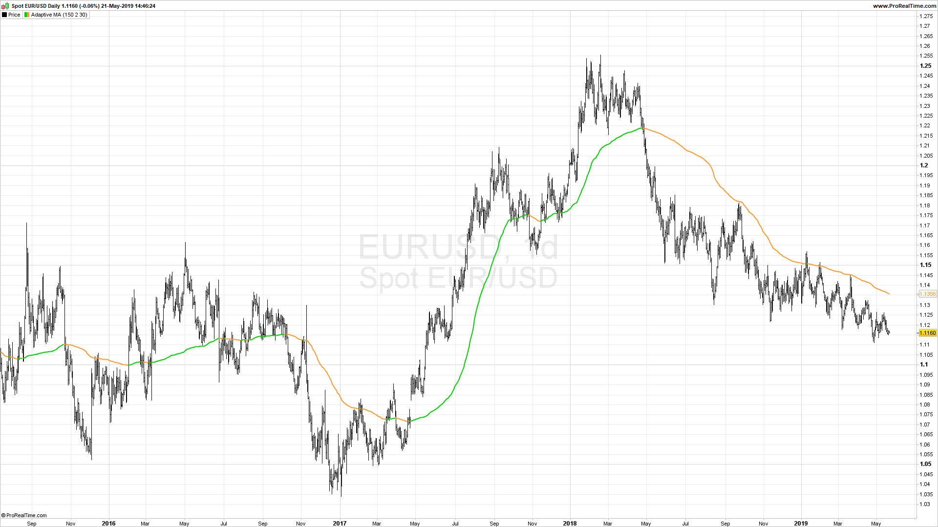 Example: Adaptive Moving Average shown on a ProRealTime Chart