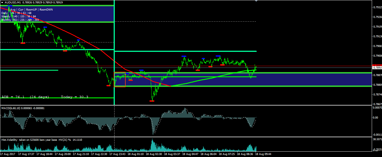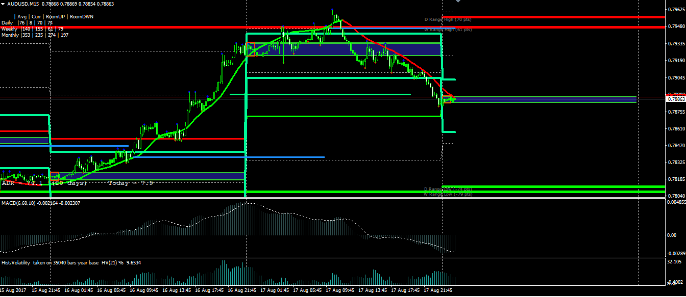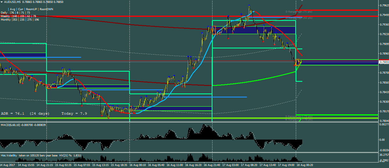 2AUDUSD broke above it's Average Daily Range of 74.5 pips based on the Heiken Ashi Median price / Instantaneous trendline / Non Interpolated Moving average. Since it is above that range , I would expect it to close the day somewhere around ASIA open. At the very least , test the ASIA open area for a move back into daily highs. Price is also moving into what I perceive to be a Seller supply area. Above the range would be overbought for the day. If it drifts slowly down towards daily open , I believe we could see a small continuation to the upside. For the remainder of the day , I am looking for a possible sell based on price action and overbought daily range.