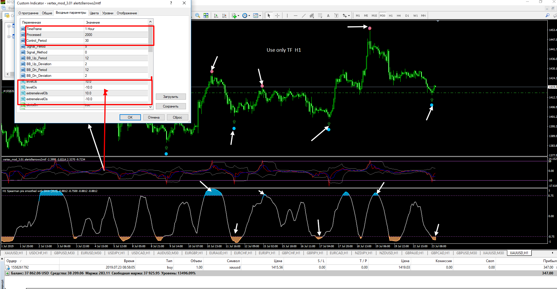6it looks good on paper. but vertex repaints badly (and not jus the 3 last bars), thus making the shown strategy to be unrealistic.roman251117 wrote: Tue Jul 23, 2019 6:29 pm Use these Vertex settings and the additional Spearman indicator and you will have a good result. Good luck