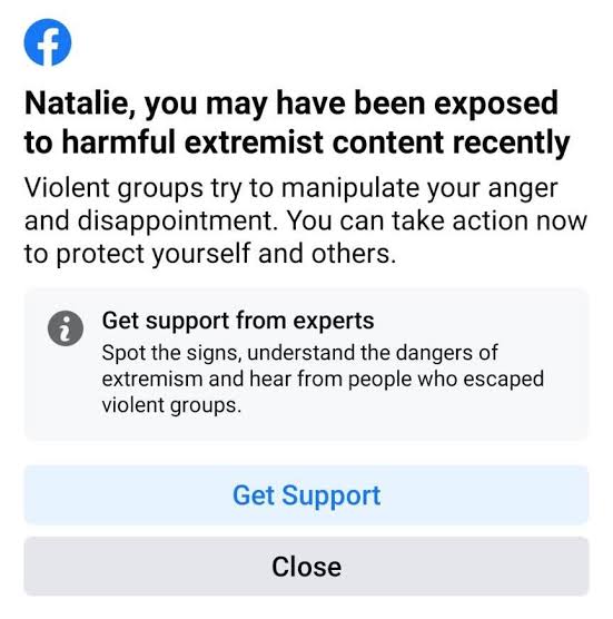 This test is part of our larger work to assess ways to provide resources and support to people on Facebook who may have engaged with or were exposed to extremist content, or may know someone who is at risk,”