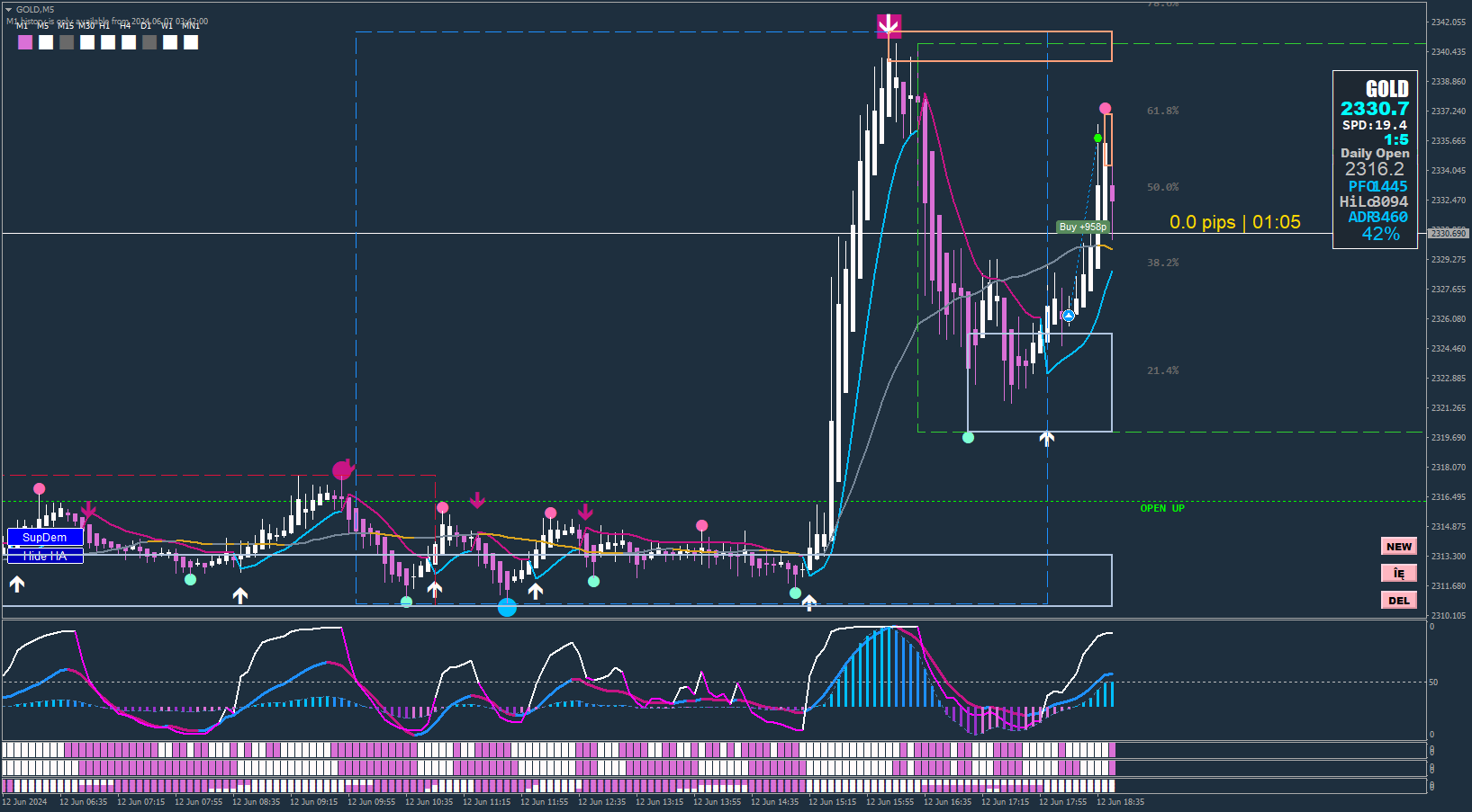 4) There is a Supply Demand button on the bottom left of the chart. I usually check it quicky to undeline consolidation zones or confirm a zig-zag top-bottom.