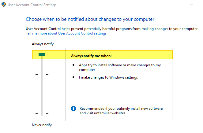 Change your Windows User Access Control (UAC) settings