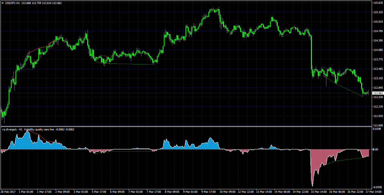 PS: The fill color and the color of the slope of the volatility quality aren't necessarily the same, so pay attention when it comes to that. Also, Stridsman version is using that "slow" average that is the primary criteria for trend (if the vq is above slow average, the trend is up, if it is bellow, the trend is down). Colors of VQ in that case can be treated as short term changes in the trend