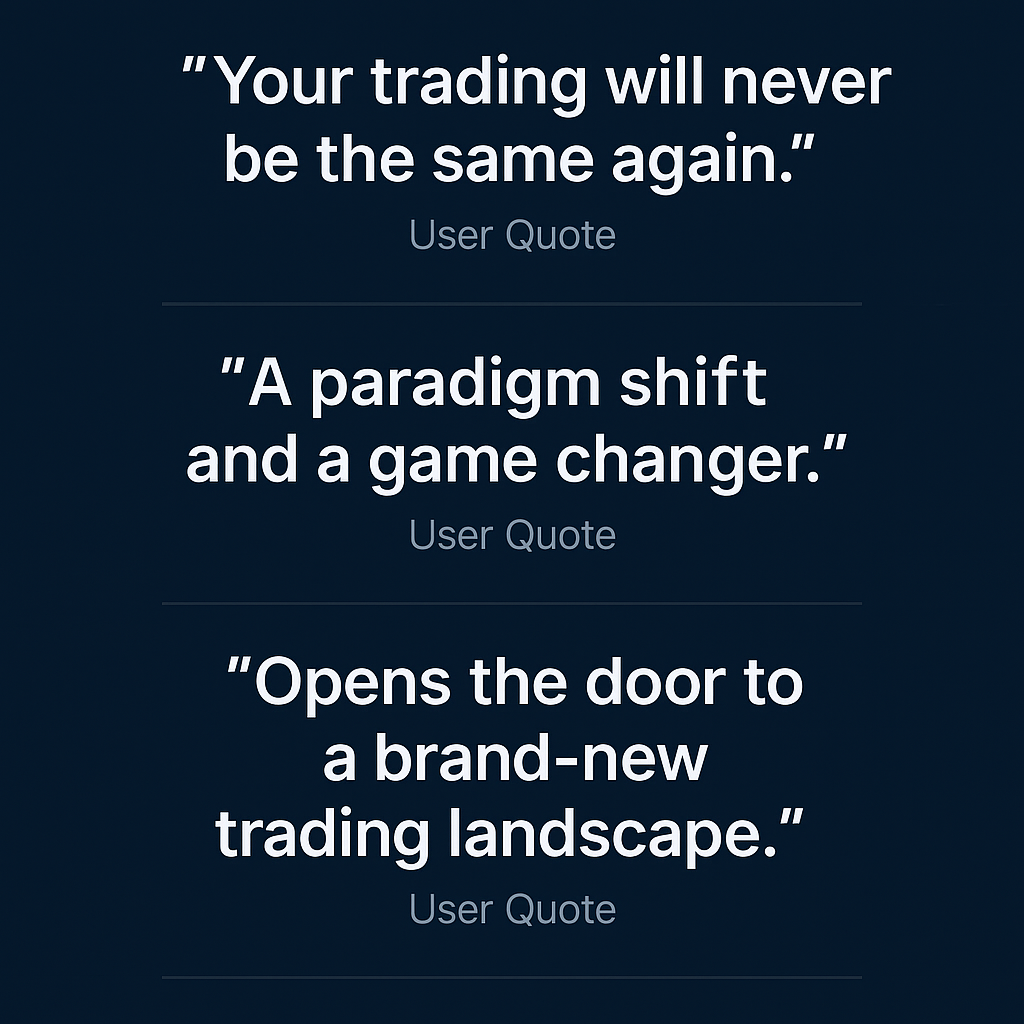 โThe best trading product Iโve purchased in over 15 years.โ โA game changer.โ โMakes trading easier, more profitable โ and more fun.โ
