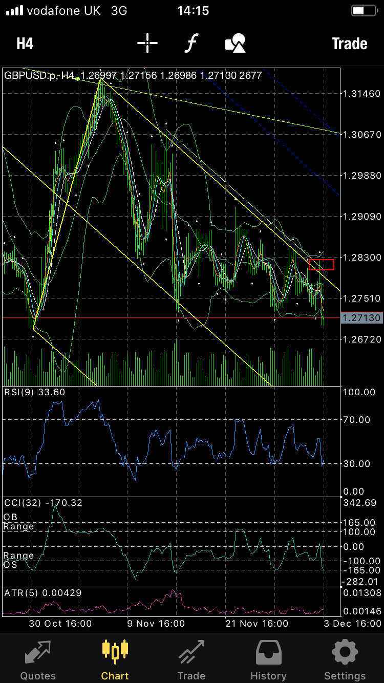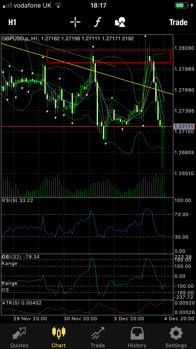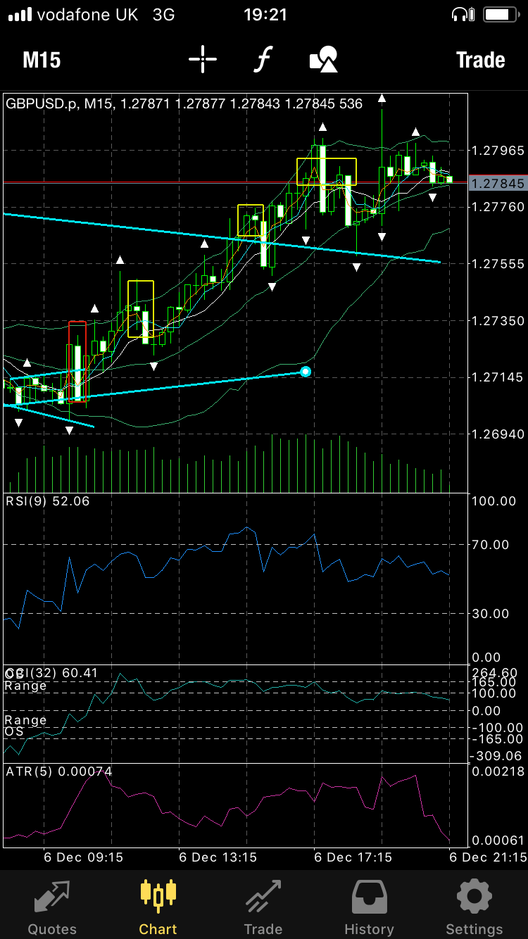 You should see straight away that the simplest trade is now a break of the “inside formation” to the downside, through my aqua trendline on the mobile MT4 chart.