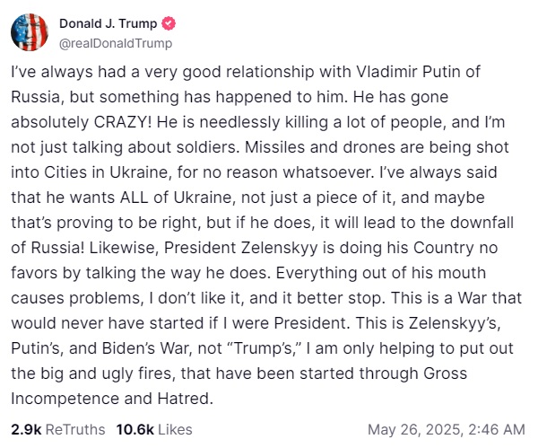 Trump realised he had no cards to make demands of Putin as an adversary so took that hat off and put on a mediator hat and tried to make demands with that. But no go, Putin's not fooled, but he is trying to work with Trump regardless.