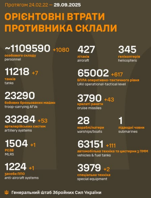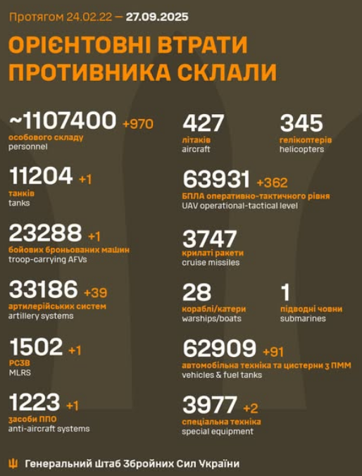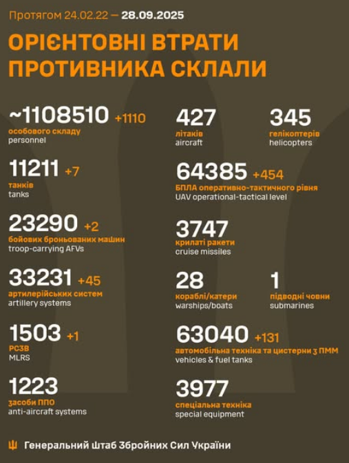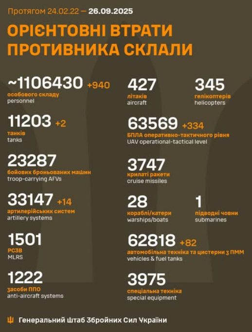 anti-aircraft systems – 1222 (+4) aircraft / aircraft – 426 (+0) od