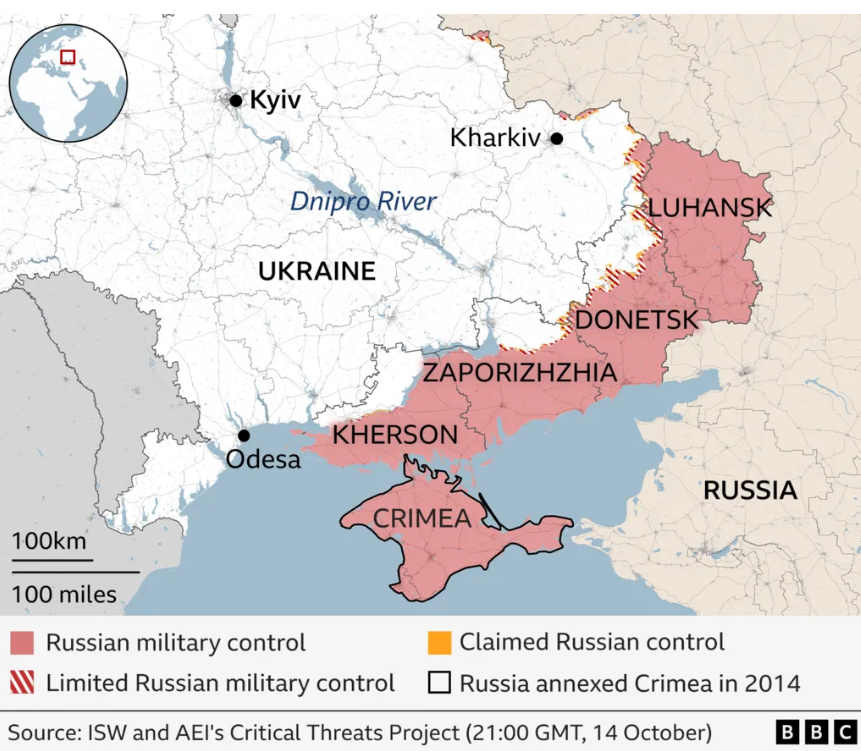 And with Luhansk and Donetsk off the table then there only remains the 25% of Kherson and 25% of Zaporizhzhia oblasts not yet in Russian hands to argue over. There must be a price for losing and Putin will demand the 4 oblasts in their entirety.