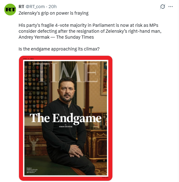 Yarmek (Zelenky’s number 2) is being brought down by the NABU corruption scandal and Zelensky will be next.