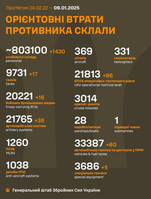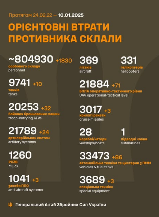 The estimated total combat losses of the enemy from 24.02.22 to 11.01.25 were approximately /