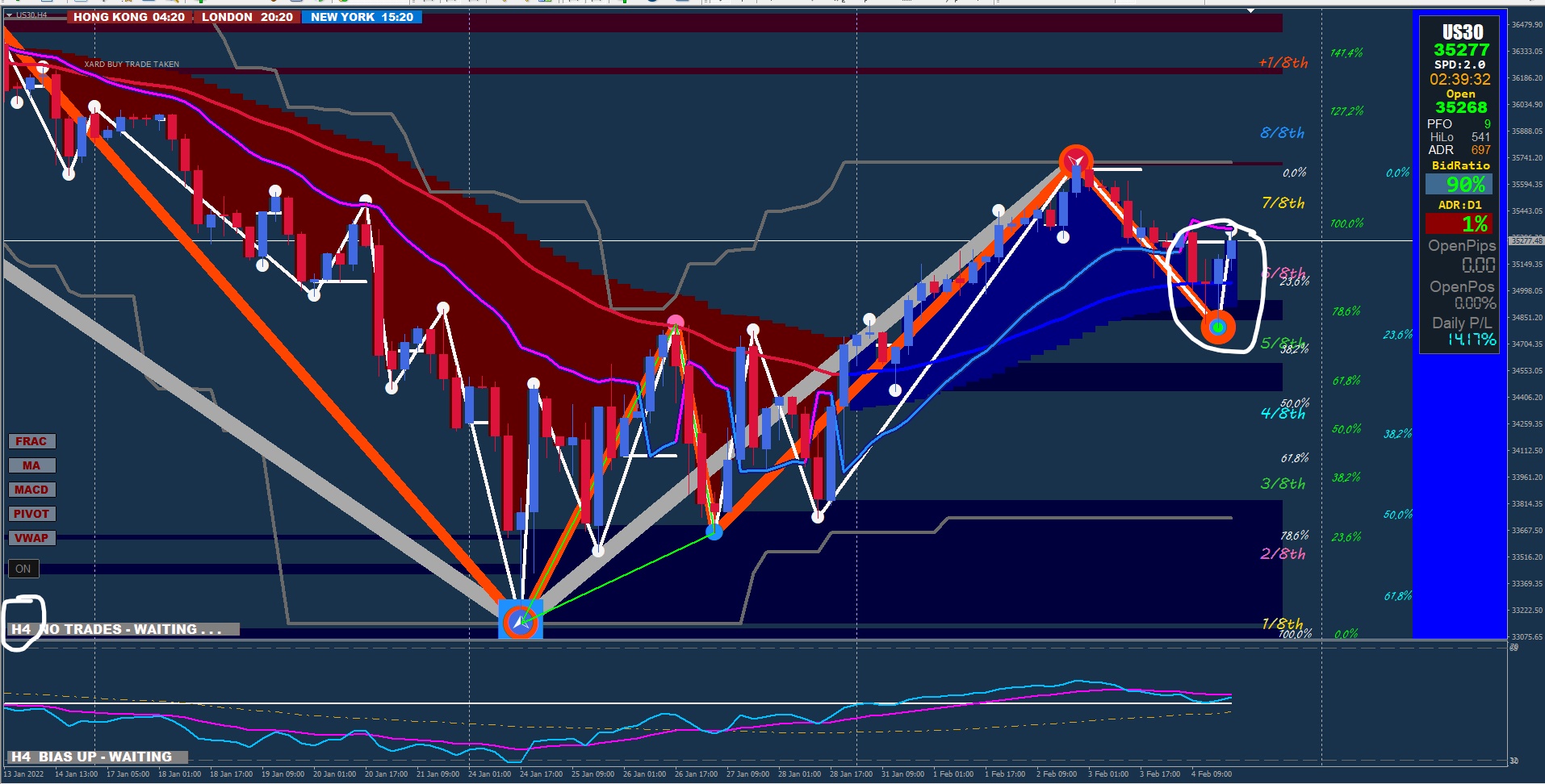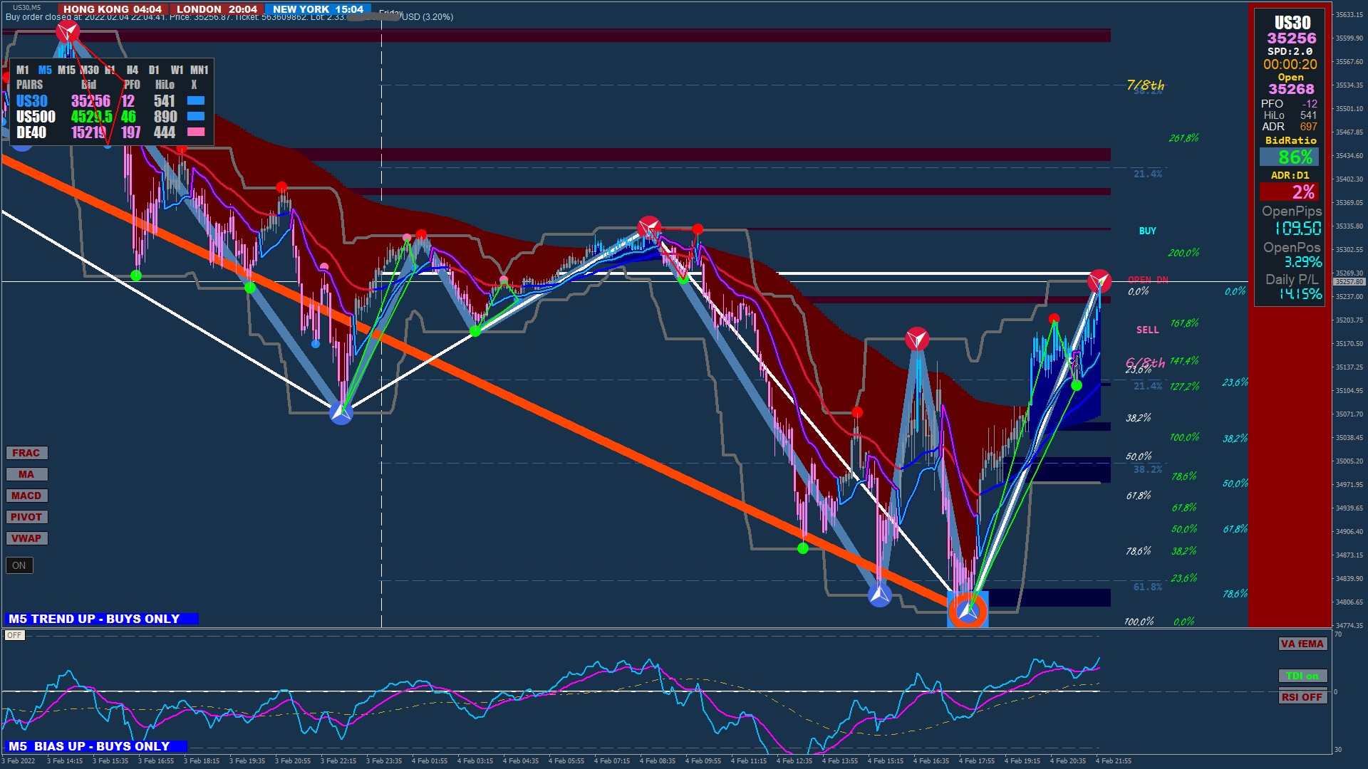 Just wait for the setup as above on your 5M chart, use the 30M chart to establish the longer timeframe trend. Keep in mind you are looking for trades away from the ZZ's.sgarr wrote: Fri Feb 04, 2022 7:07 pm so before making buy positions at 5 minutes I wait for the first candle on 30 minutes to be buy, from that moment I look for buy positions on 5 minutes, I understand well thanks for the time you have dedicated to me good work