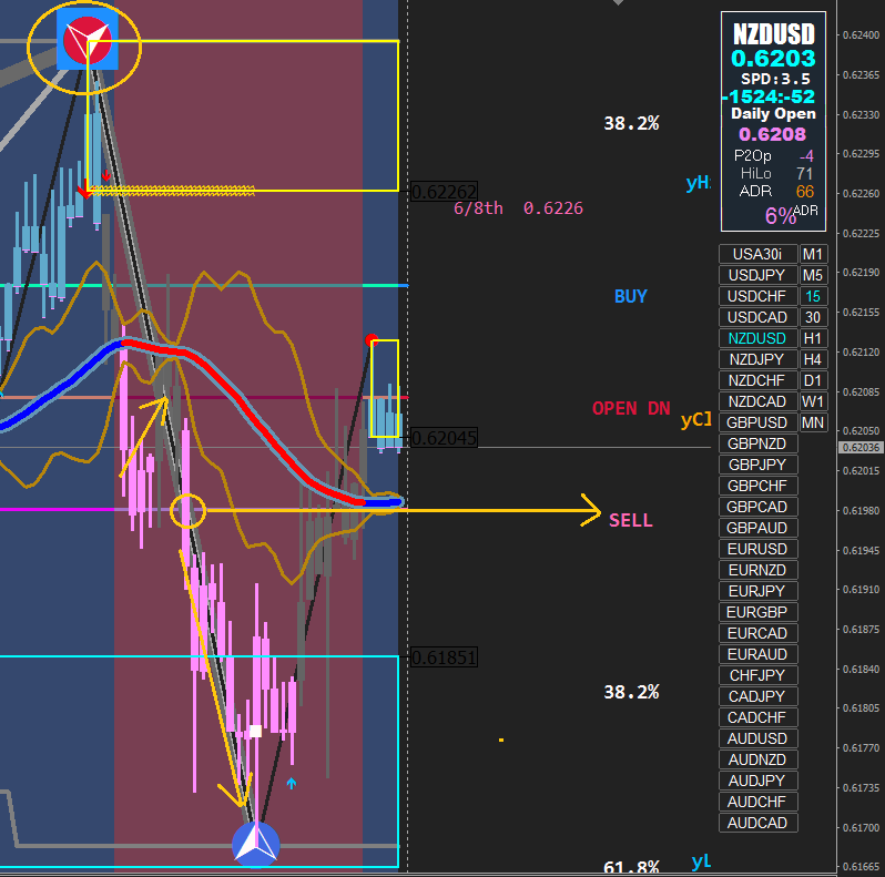 The best trades are at the cross of the Trend line if you are in a SELL on a Pink Candle then instead of a stop loss just bail if a Blue Candle appears. If you're in a BUY on a Blue Candle again bail if a Pink Candle appears. For the opposite colour candle to appear price has got to cross back over the Trend line which means that you should no longer be in that trade and you should without hesitation cut your losses instantly and WAIT sit back and reassess the situation (check higher TFs, previous highs and lows, how far has Mmath run, 2/8ths, 3/8ths, 5/8th, are we at overbought +1/8th +2/8ths or oversold -1/8th -2/8ths).