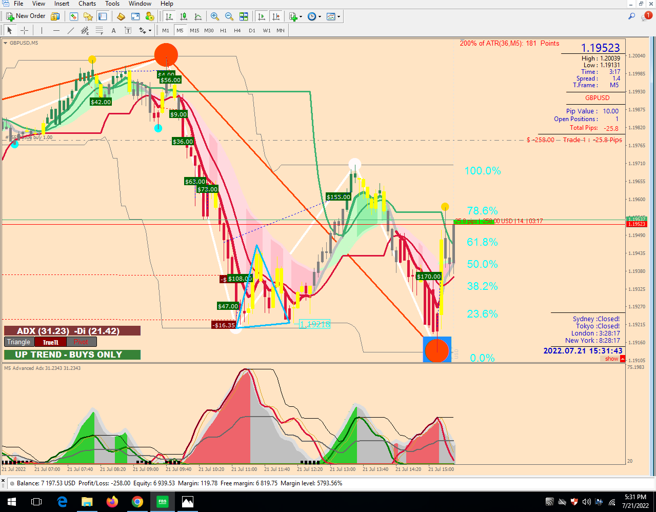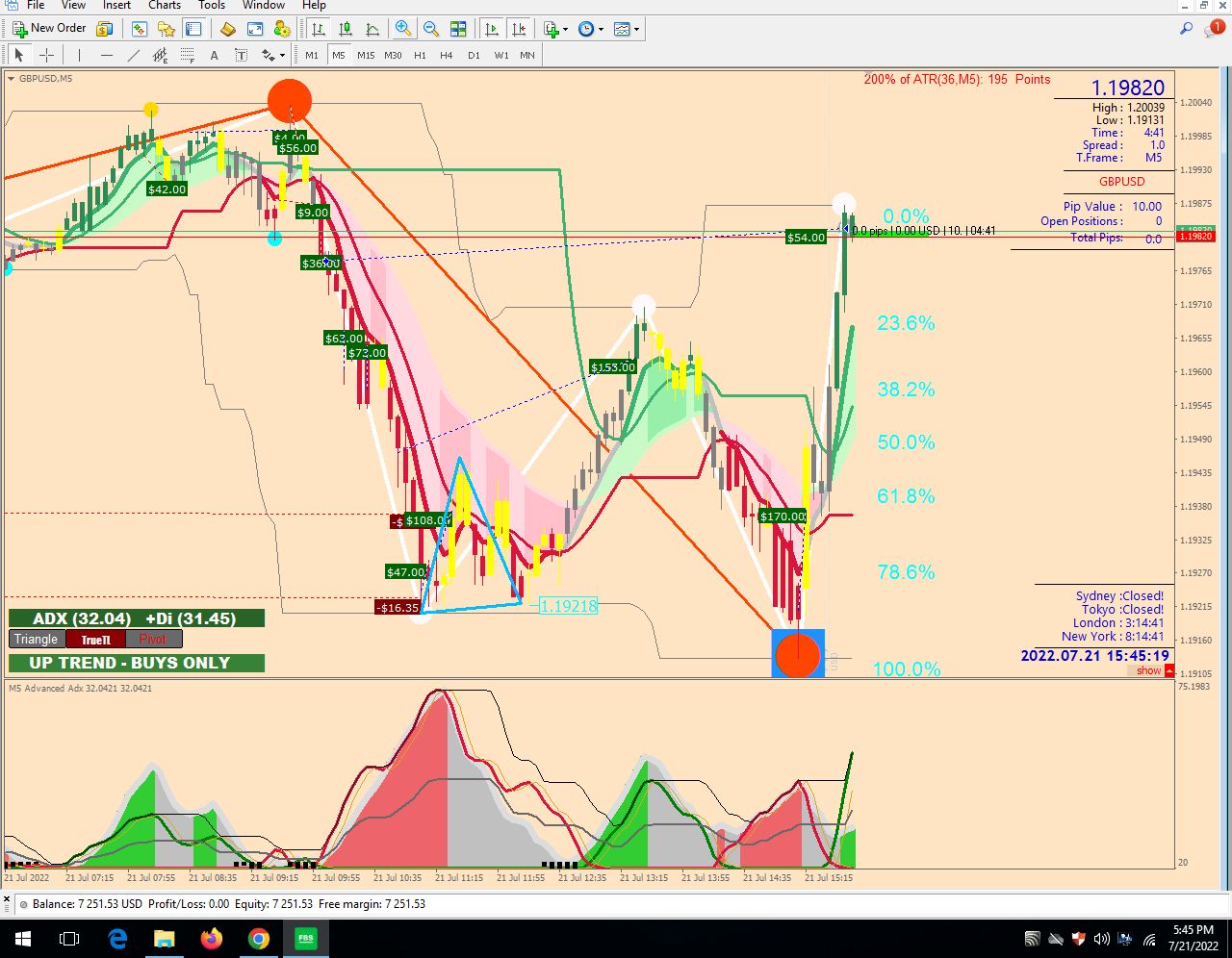 The green circles indicate entries and the yellow take profit, last TP was at the 61.85 ADR level. 38.25ADR is also a good place to be taking profit.