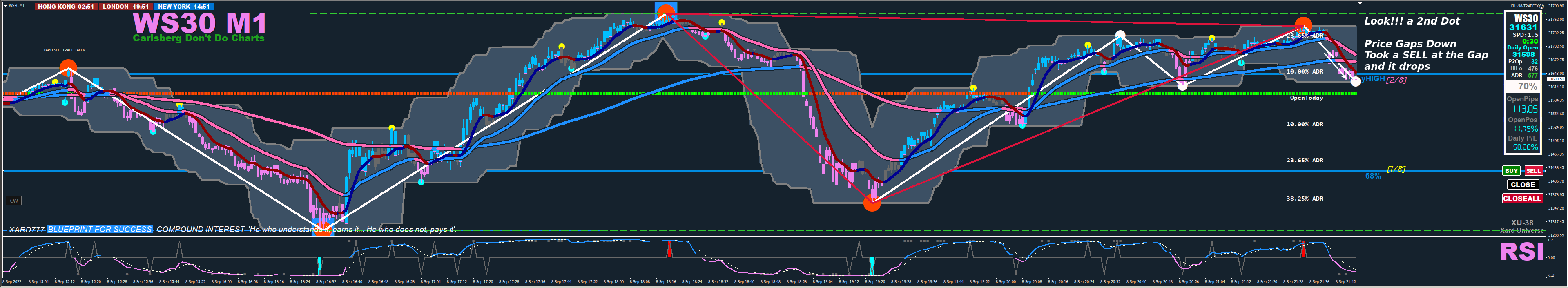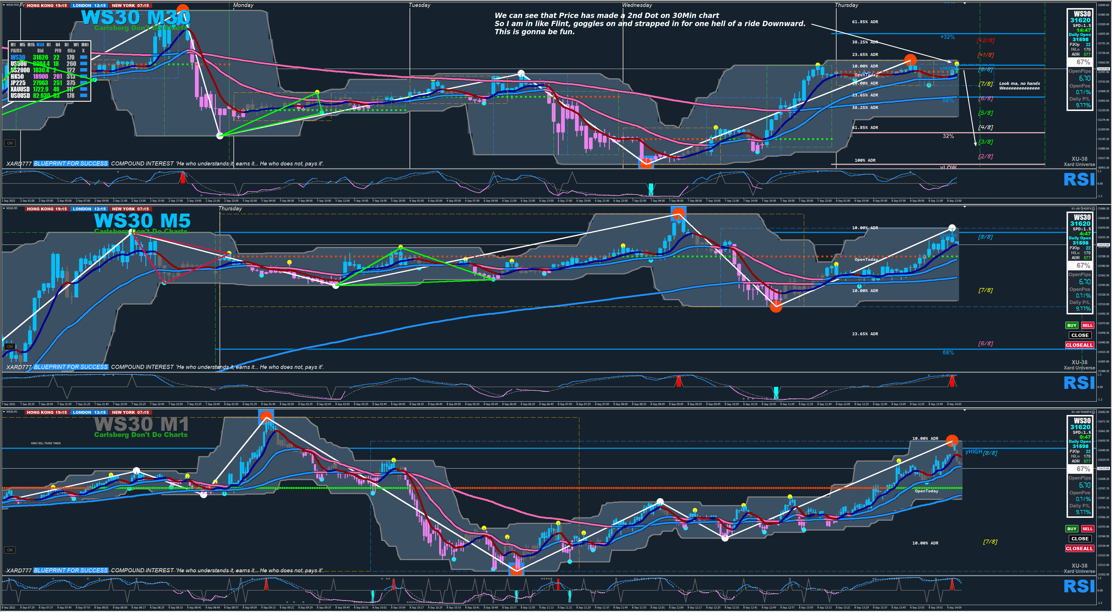 Keep It Simple Stupid (KISS) keep your eye on the chart trading as price crosses the 5 min Trend line and repeat this process several times per trading day until you hit your daily target (and a bit more). Most of your meat will come off the 2nd Dot and you are not going to get 300 and 400 Pip$ moves, settle for 30, 40 & 50 Pip$ per trade on Indices and start with a 2% or 3% daily target being increased to 7% or 9% the following three-month cycle and slowly build it up from there.