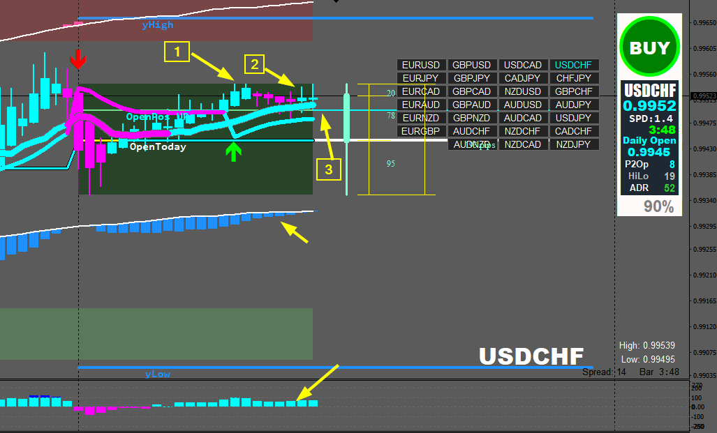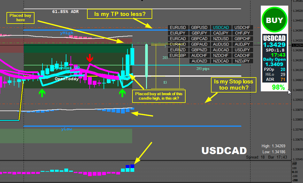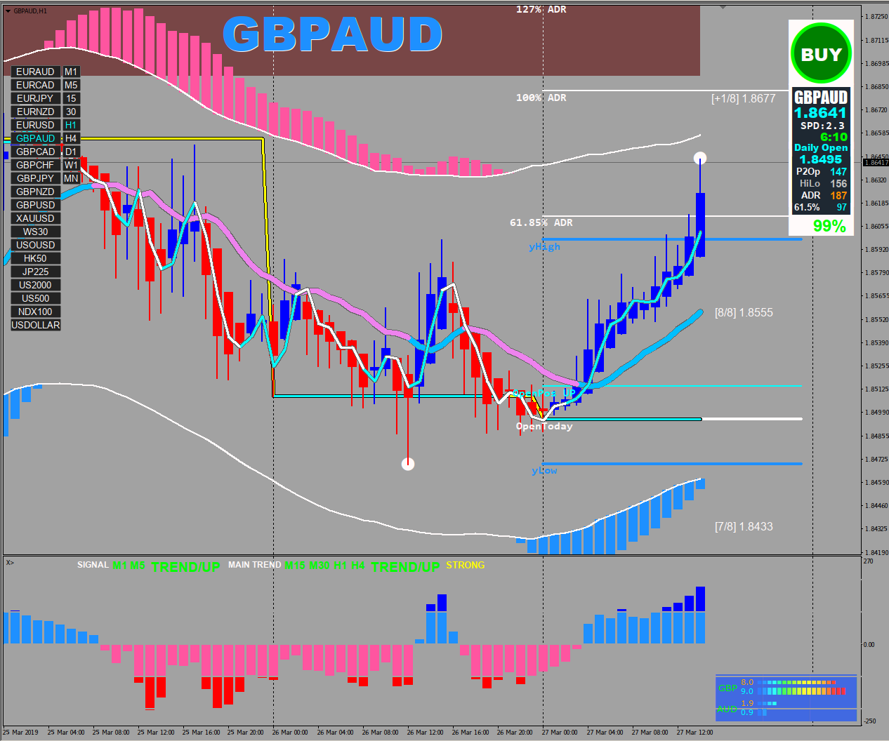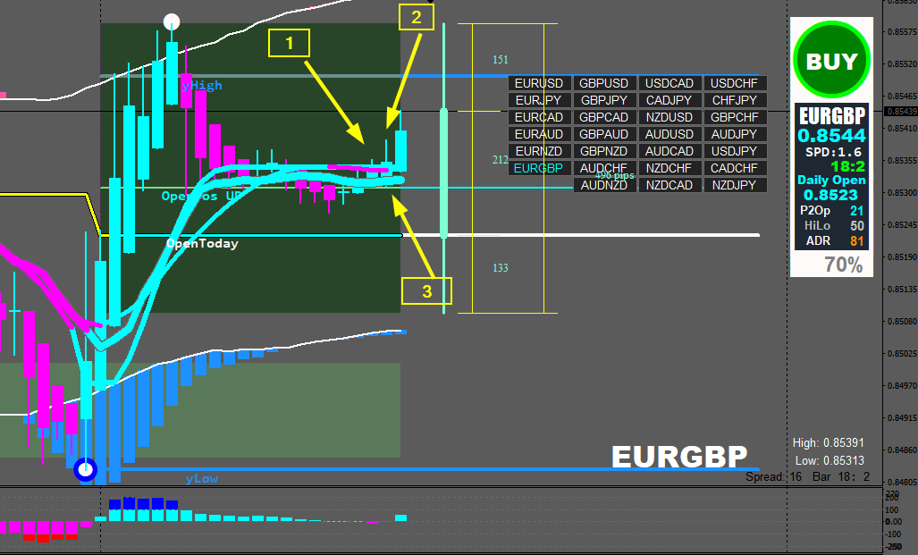 So 187 ADR x 0.5185 = 96.96 Pip$ Profit from an entry off the OpenPos line to the 61.85% ADR line.