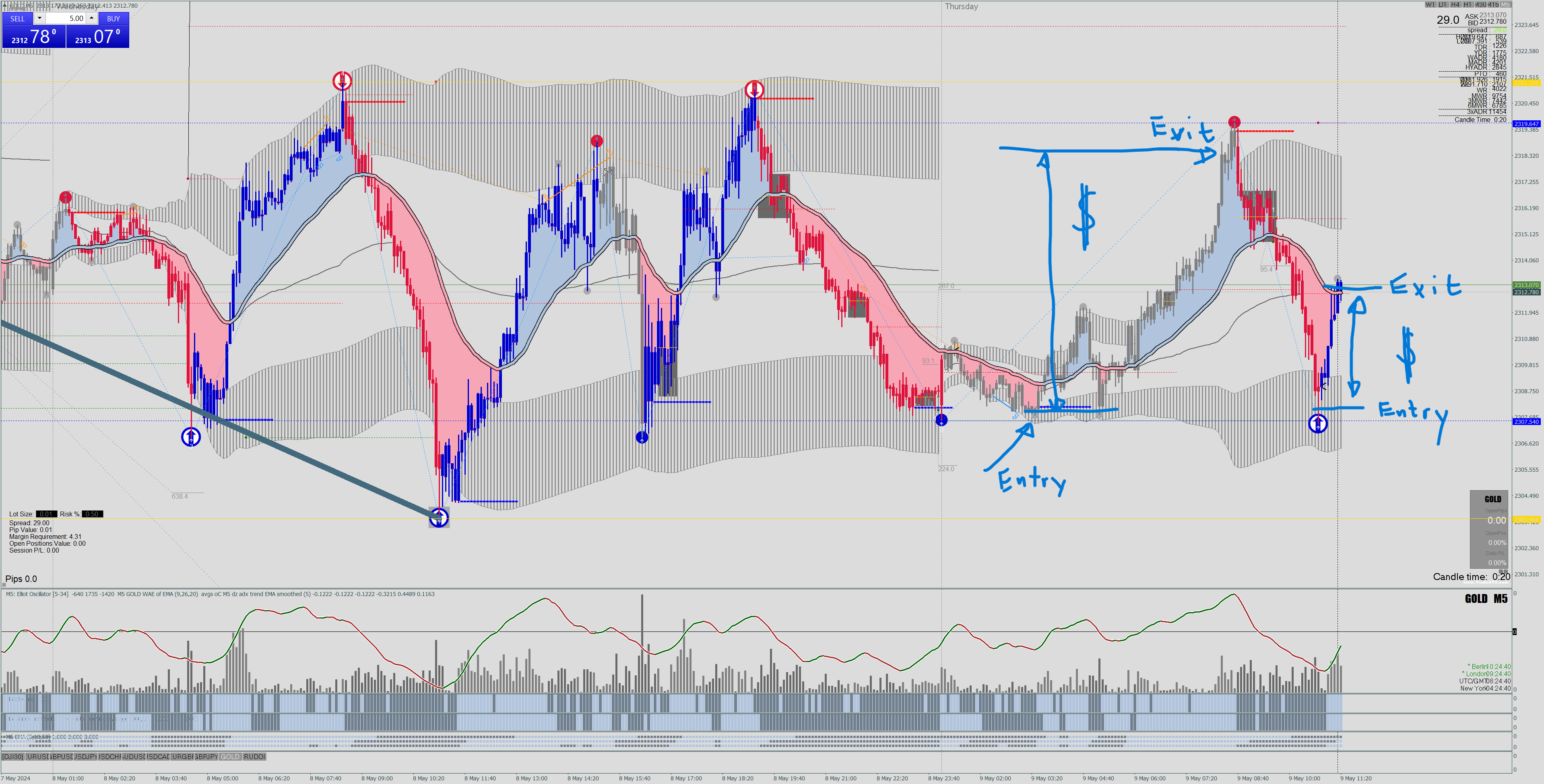 But I used EMA 13 and 55 based on the attached indicator.