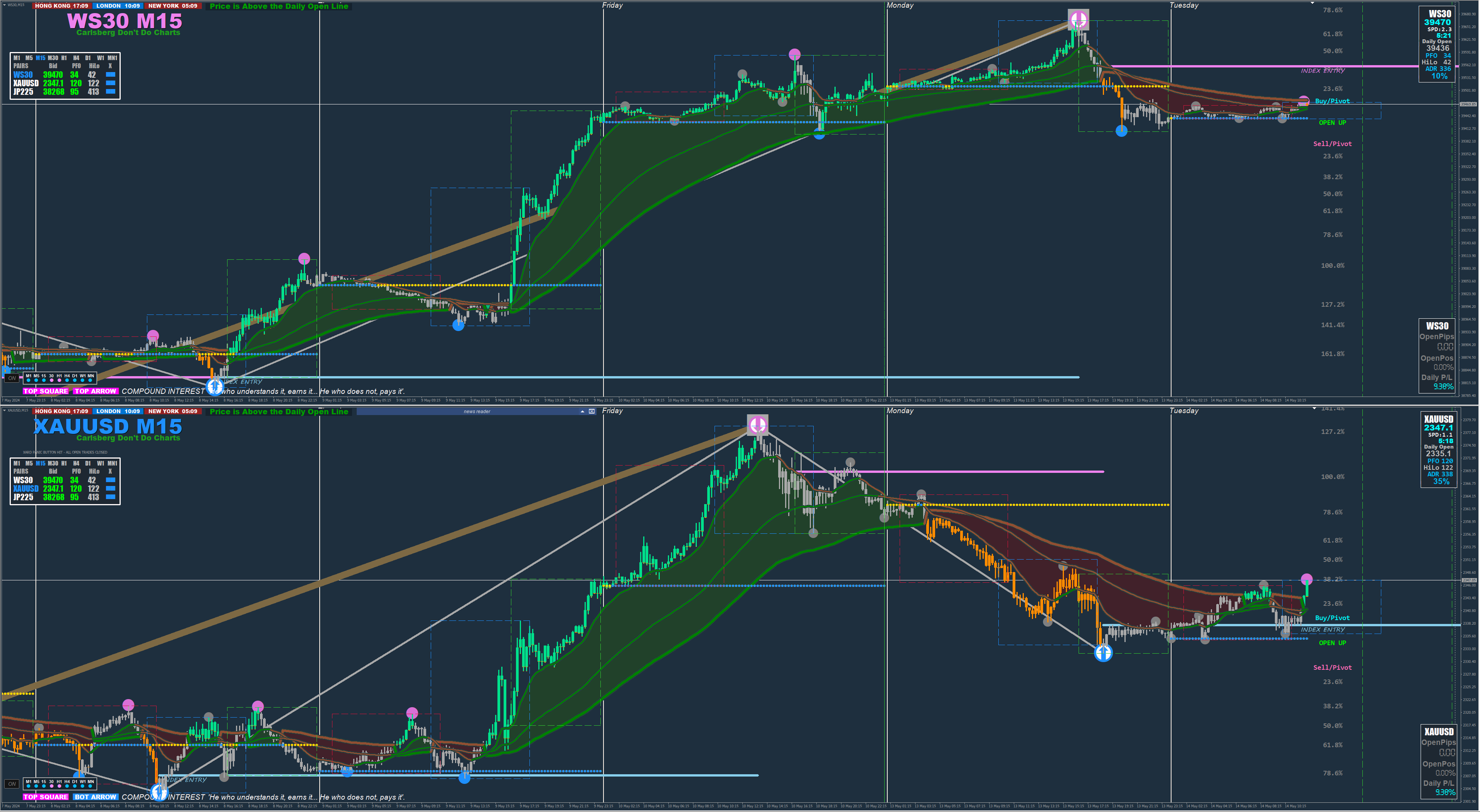 1. **Set Up Your Chart** - **Plot Moving Averages**: Add 13, 55, and 89-period moving averages to your intra-day chart. - **Mark the Daily Open**: Identify and draw a horizontal line at the Daily Open price.